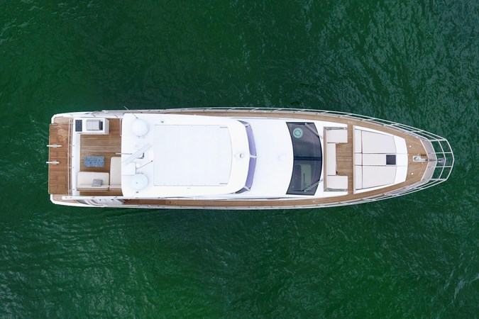 This 2016 Azimut 66 Flybridge features four staterooms, three heads, and crew accommodations. KIKI delivers space, comfort, and performance in equal measure. She blends sleek Italian design with modern construction. From the moment you step aboard, the attention to detail is clear. The aft deck features teak decking, U-shaped seating, and a new granite tabletop comfortably seating 6–8 guests. Color-changing LED lighting and JL Audio sound system create a sophisticated atmosphere, while a hydraulic swim platform with tender storage transforms into a teak beach.
