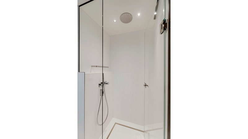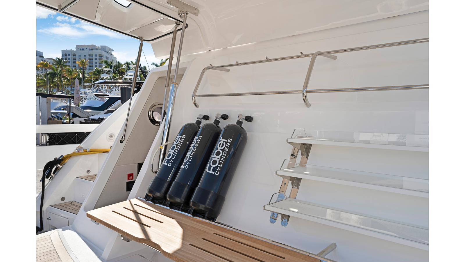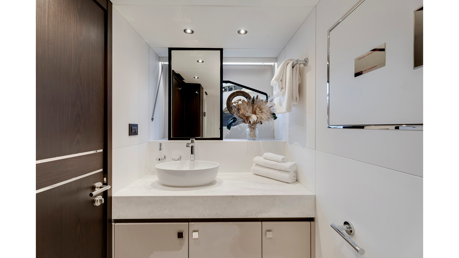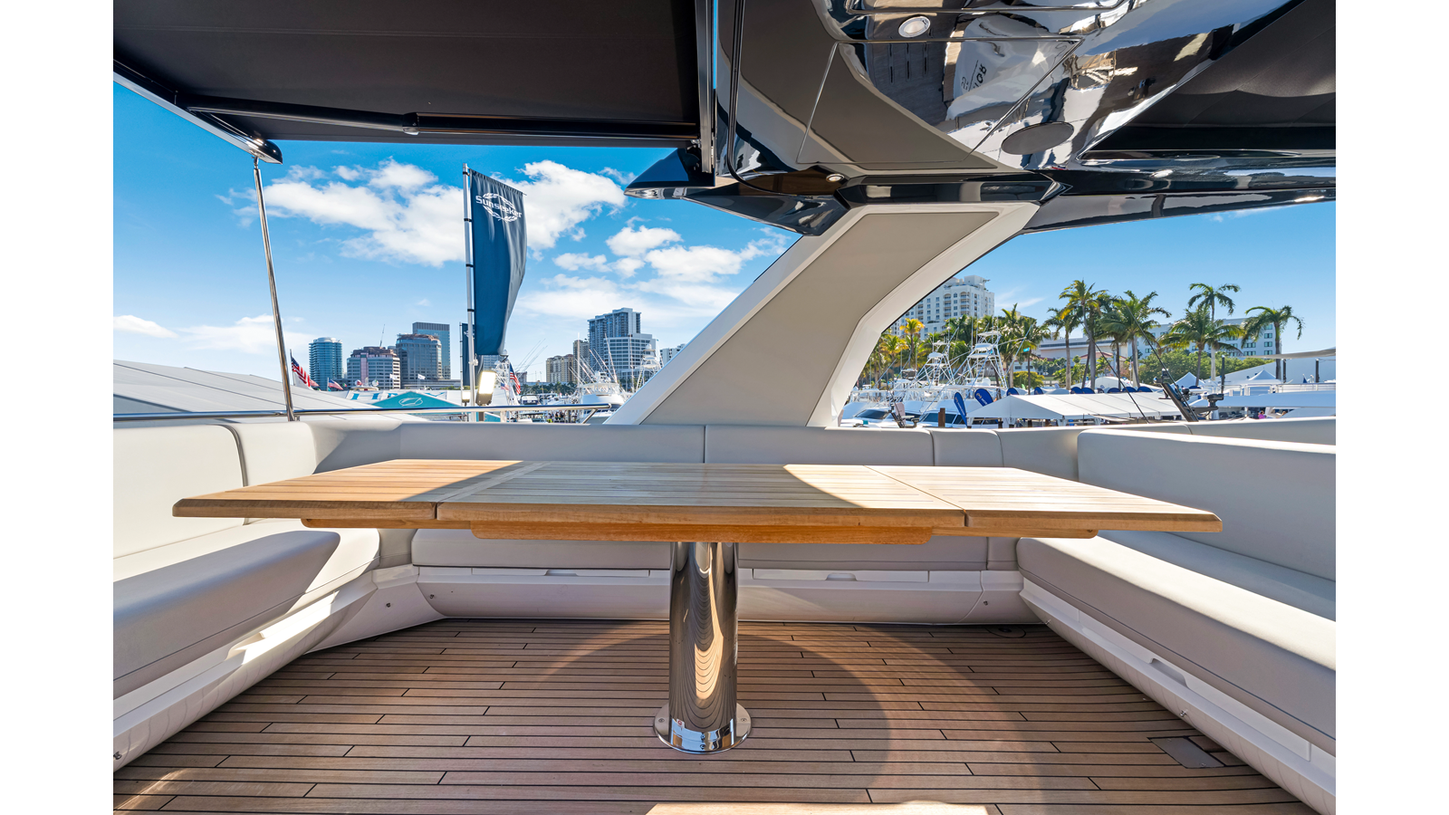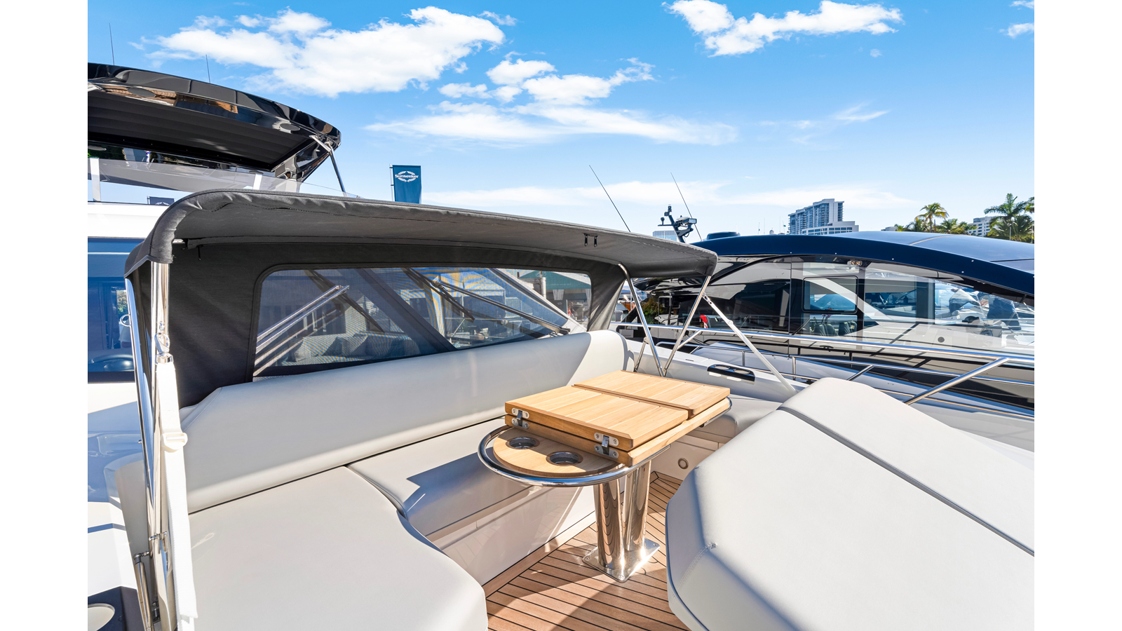 Throughout the main deck, there is a strong focus on creating generous, usable sociable spaces. The exterior lines flow effortlessly from the Portuguese-bridge bow seating and sunbathing areas to the expansive cockpit adjoining an innovative Beach Club with enhanced features, including a dedicated water level locker for two SeaBobs, delivering effortless enjoyment. Internally, the expansive main saloon benefits from sweeping glazing, extending below the TV console, revealing glimpses of the sea from all perspectives.