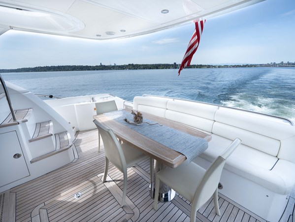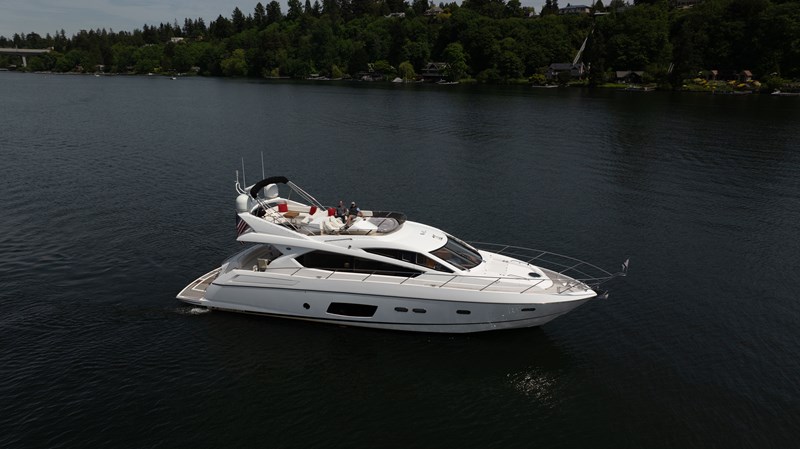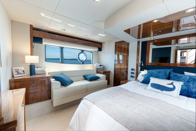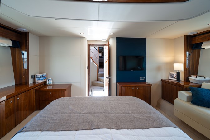 The Manhattan 63 is a perfect example of a boat that packs innovation, luxury and performance into an exceptionally graceful frame. The hull form has been designed to include the option of IPS drives – which produces fantastic results in performance, handling and economy. Interior includes an upper deck galley, four staterooms with a midships full-beam master and very large hull-side windows. Saloon and entertainment space has been enlarged with bright panoramic windows that ensure plenty of light and a feeling of openness. New curtains are easy to use and give a bit more of a nautical theme as the are made from designer selected Sunbrella fabric. Contact us for more details!