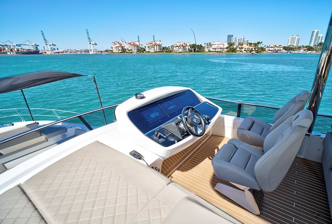 This yacht boasts contemporary styling with a modern vibe, meticulously hand crafted in England. The Squadron 68 seamlessly combines upscale fashion with a well thought out layout. Featuring four guest cabins, three with ensuite baths. Master and VIP with European size King Bed, and two guest cabins that each sleep two guests. Crew Quarter sleeps two and is equipped with full size shower and bathroom area. The spacious Flybridge provides three area tailored to your specific needs such as luxurious dining, triple sun loungers and forward seating. Well Equipped Galley, with full size fridge and freezer, single combi oven, solid surface worktop, expansive storage.