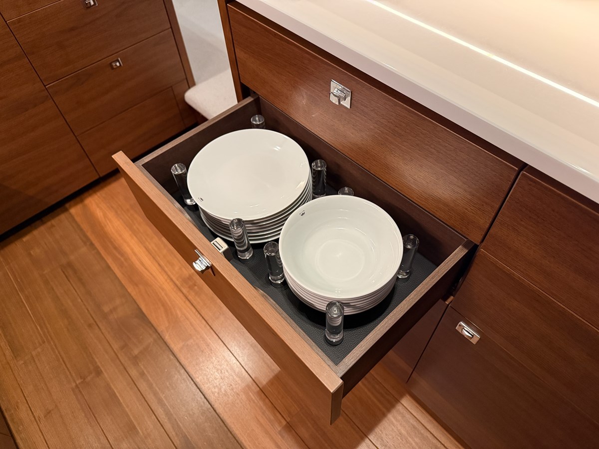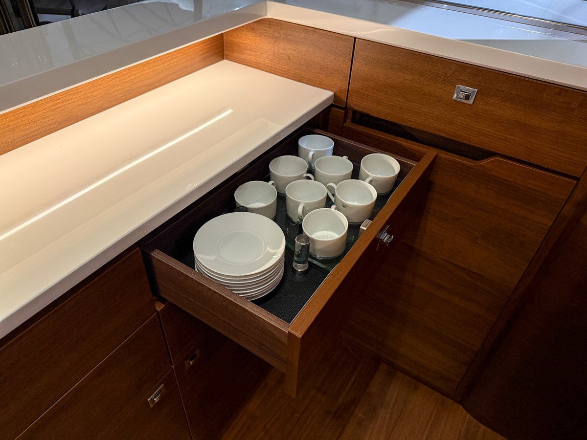 The interior is finished in elegant satin-finished walnut, creating a warm and contemporary feel throughout. Combined with Princess’ renowned craftsmanship and intelligent layout, this yacht offers generous living spaces, luxurious cabins, and superb social areas both inside and out.