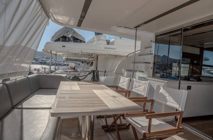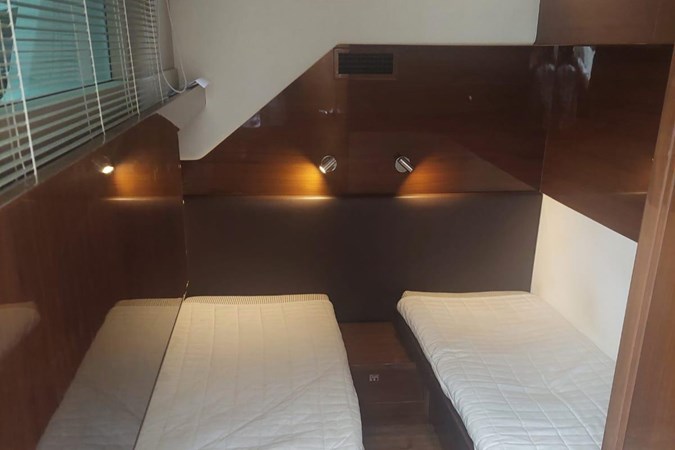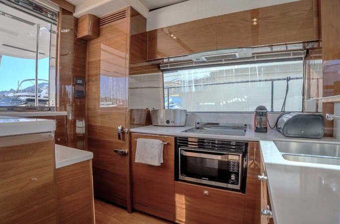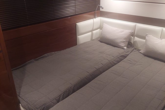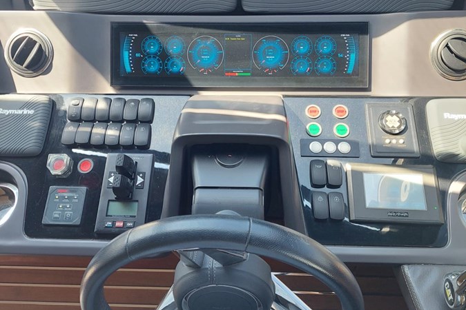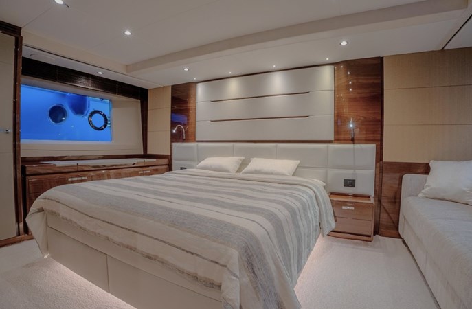 Inside, the Princess 68 offers a bright, open-plan saloon with panoramic windows, a fully equipped galley, and four ensuite cabins for eight guests, including a spacious full-beam master suite. Crew accommodation aft for two.