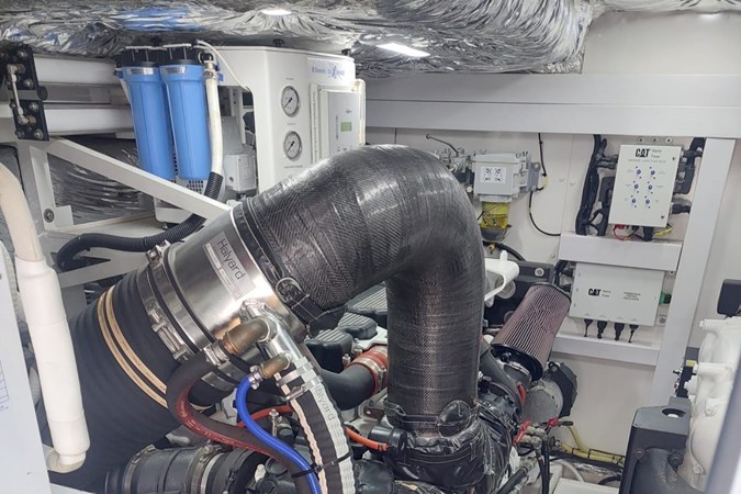 Powered by Caterpillar C18s with low hours, this privately used yacht is equipped with stabilizer , hardtop flybridge , hydraulic bathing platform , crane , Raymarine electronics , Onan generator , watermaker , and bow & stern thrusters . She is perfectly set up for Mediterranean cruising.