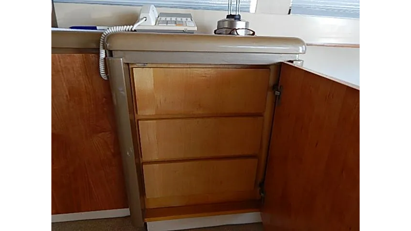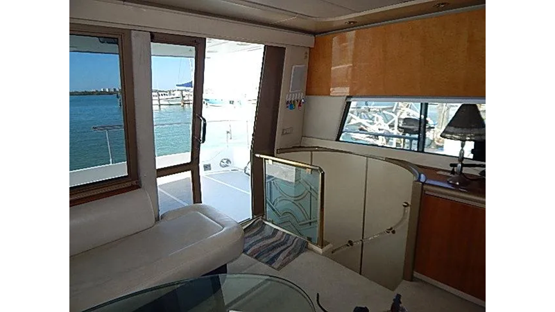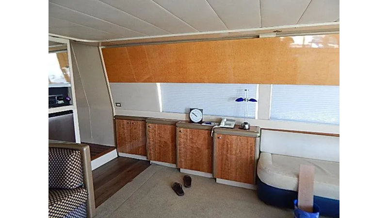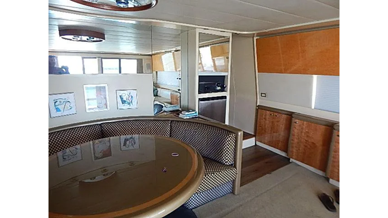 The warm interior (redone 2002) features a high gloss oak and burl wood interior that creates a contemporary but warm feel for this discriminating owner. The carpet flooring was upgraded in 2015, upholstery and curtains 2015.