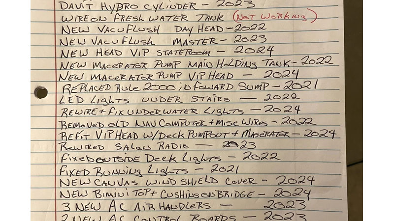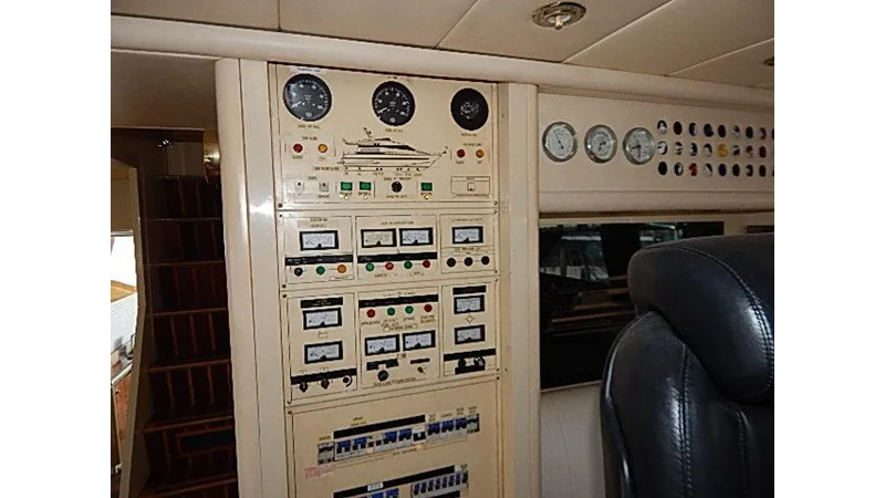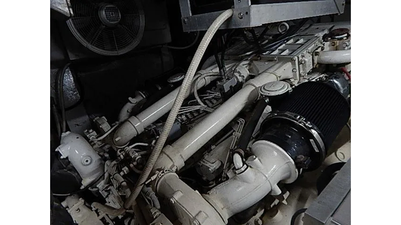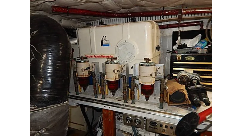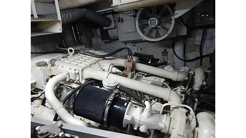 The yacht is equipped with reliable twin MAN 12 cylinder diesel engines(1000HP each), the engines are very fuel efficient at low RPMs, the MAN engines dropped down to six cylinders each at slow speed for fuel efficiency. Plus, unlike Detroit diesels these engines are 4 cycle. two generators and an inverter.