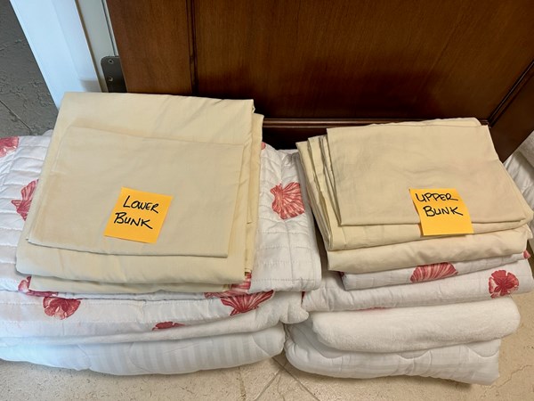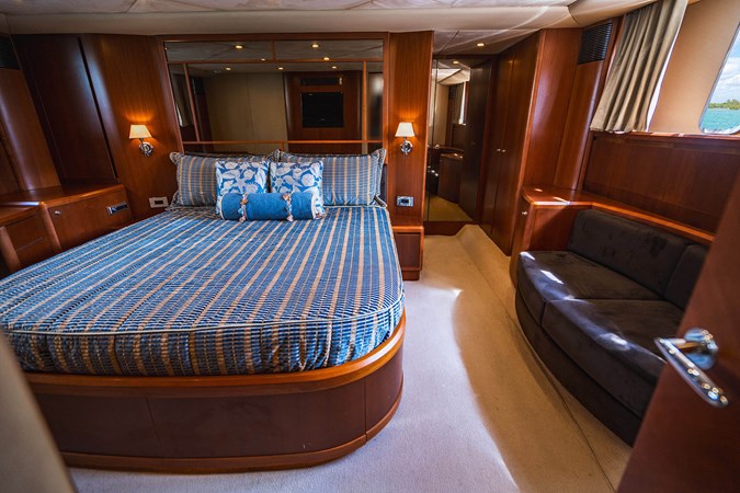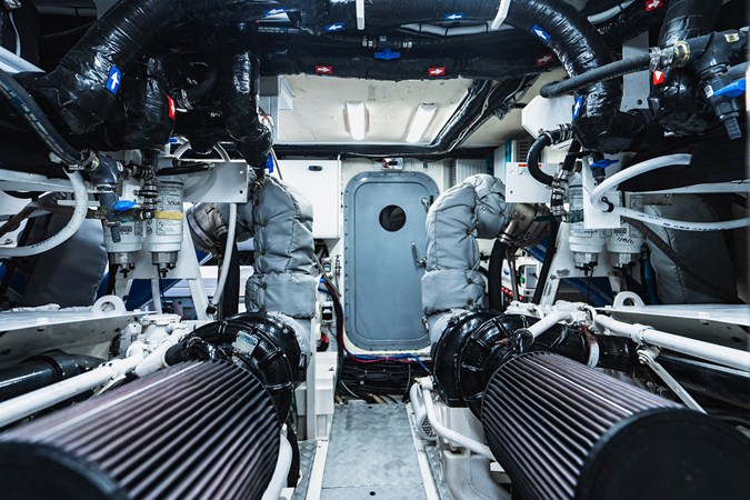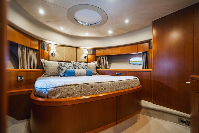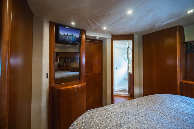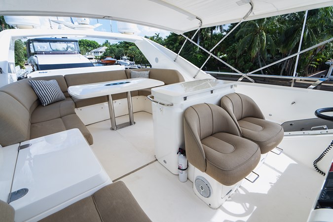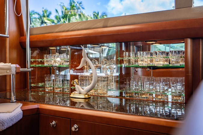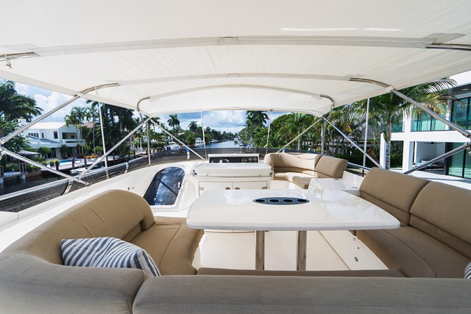 Features of this yacht include MAN diesels with 1,800 hours, two Seakeepers, new headliner in 2022, AC chiller system upgrade 2021, new Garmin electronics in 2019, new hydraulic swim platform in 2018, all new air handlers, teak decks replaced, new carpets, two sets of linens for beds included – 1 stock, 1 custom (see photos), 5 staterooms, 4 heads.