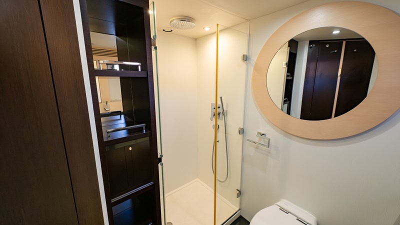 Her sleek black and grey exterior and high-end interior styling deliver sophistication and sportiness in equal measure, while her pre-loved status is reflected in the price, making her one of the best-positioned Predator 68s currently available. With thoughtful upgraded details, from Bentley-stitched Besenzoni helm seats and carbon fibre accents to fresh exterior upholstery and premium fabrics.