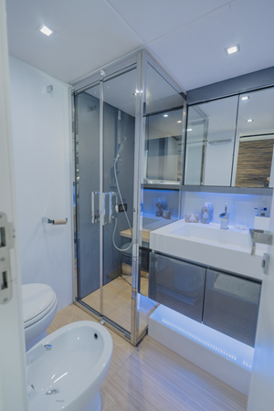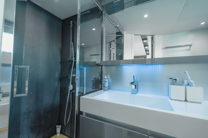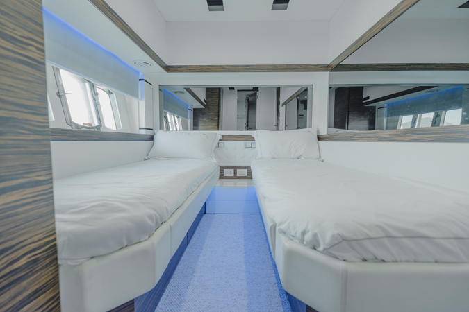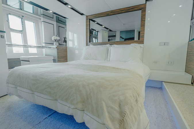 This Absolute is characterized by 3 masterpieces cabins; the owner’s and the VIP. Thanks to the sweeping windows, the staterooms are extremely luminous.