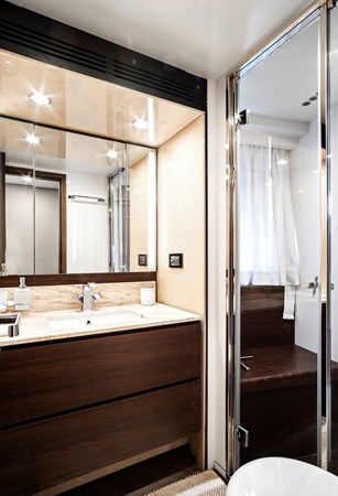 Below deck, four exquisitely finished staterooms—each with an ensuite bath—provide exceptional comfort.