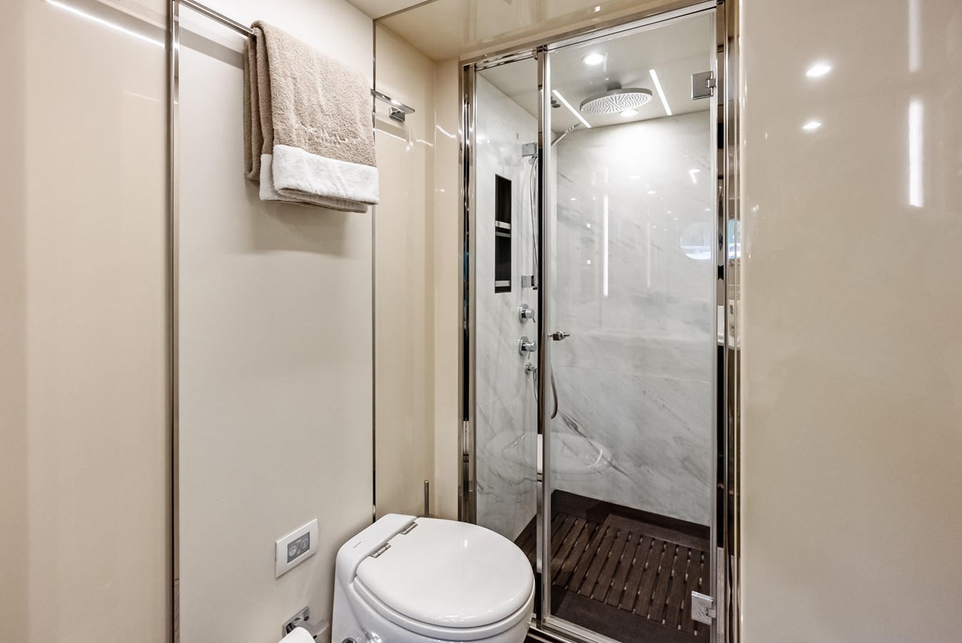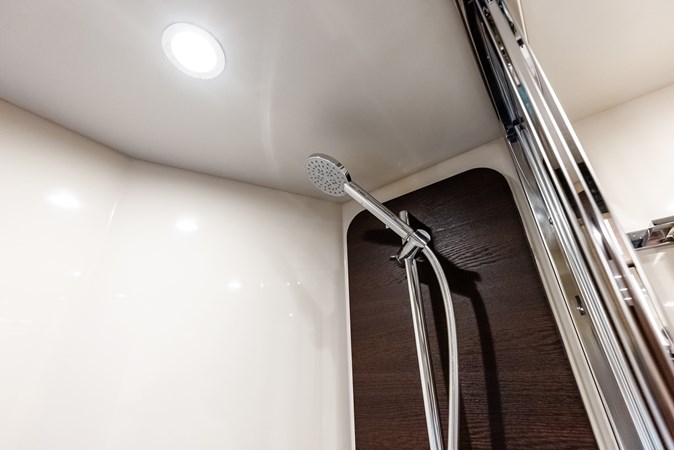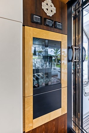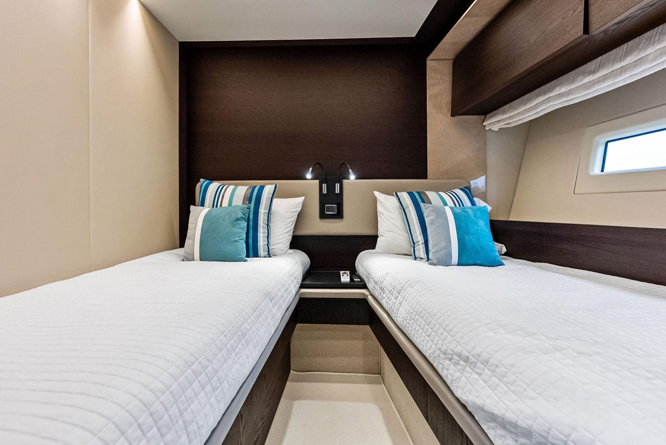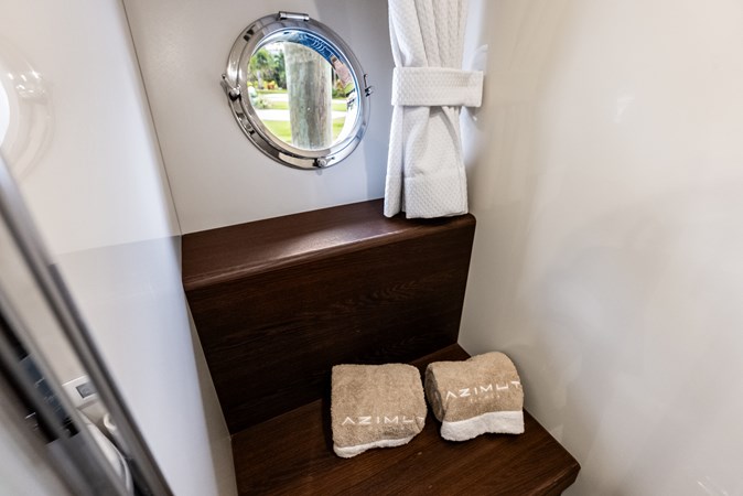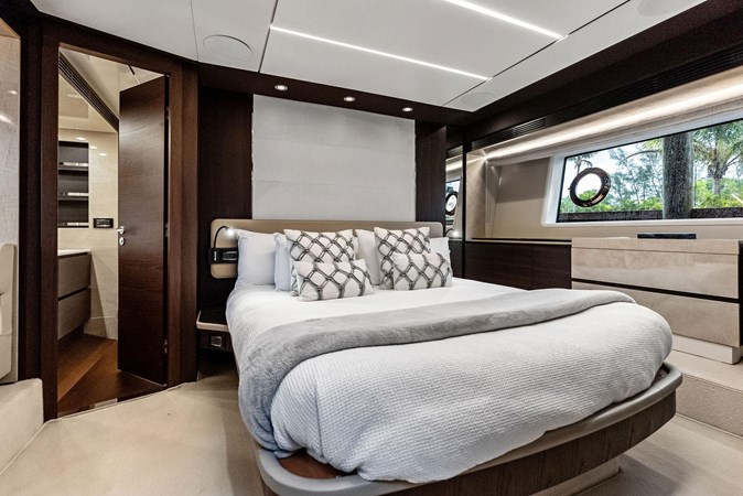 Below deck, Class Dismissed offers four well-appointed staterooms, including a fullbeam master suite, a VIP cabin forward, and two guest cabins, all with en-suite bathrooms. The master suite, positioned amidships, features large hull windows, a kingsize bed, ample storage, and a private lounge area, ensuring an indulgent retreat for owners. The yacht also includes separate crew quarters to enhance privacy and provide professional service.