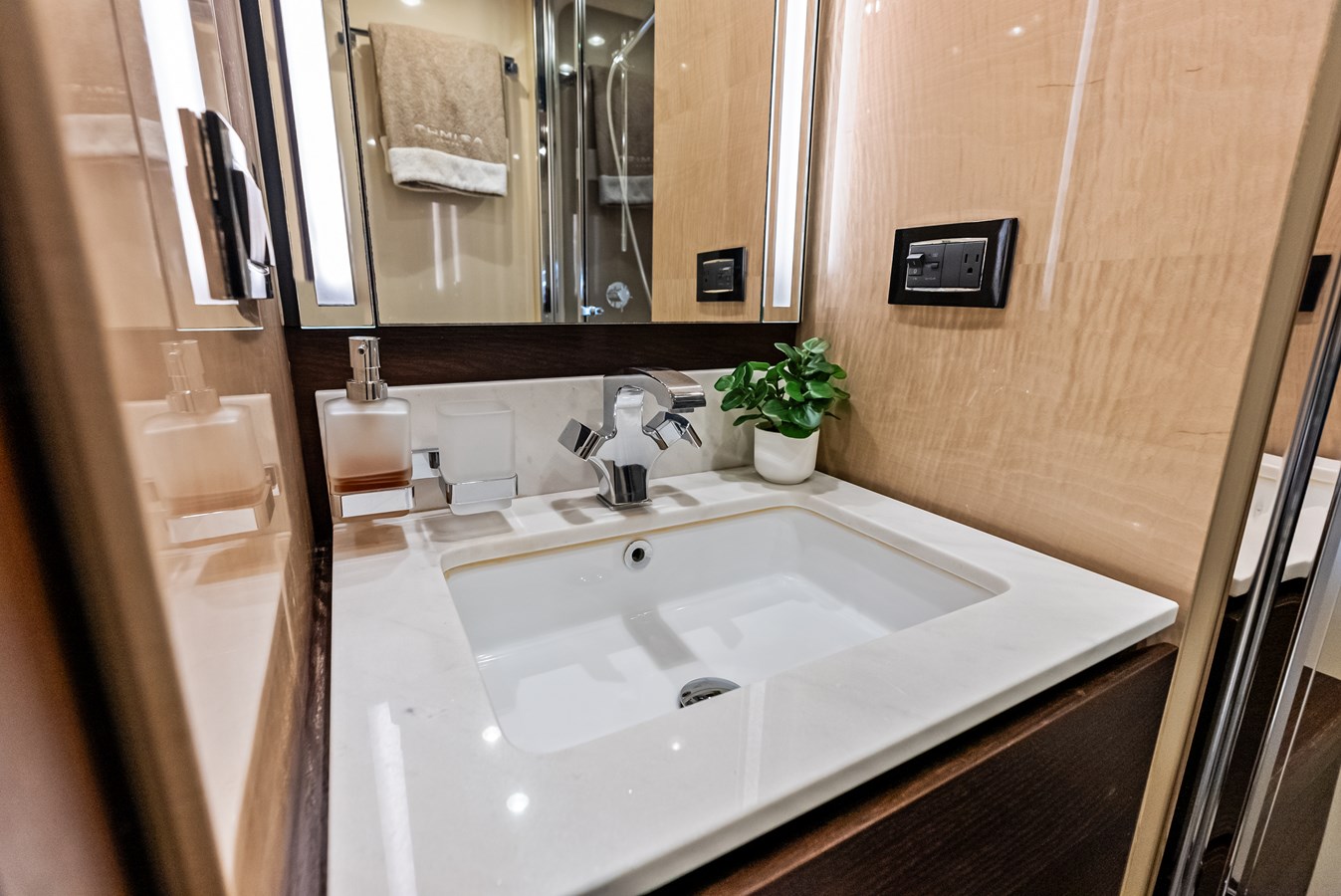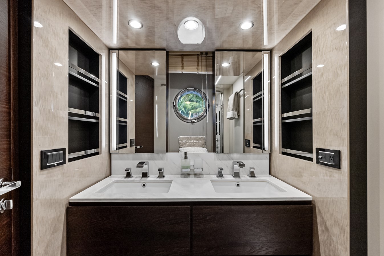 Class Dismissed is a beautiful 2017 Azimut 72 Flybridge with a stunning blend of Italian craftsmanship, cutting-edge technology, and luxurious comfort, making it one of the most sophisticated yachts in its class. Designed by Stefano Righini for the exterior and Carlo Galeazzi for the interior, the yacht showcases Azimut’s signature sleek lines, large windows, and a contemporary aesthetic. Its elegant profile is complemented by a spacious flybridge that offers an expansive area for relaxation and entertainment, equipped with comfortable seating, a dining area, and a wet bar. The use of carbon fiber in the superstructure ensures a lighter, more fuel-efficient vessel while maximizing onboard space and stability.