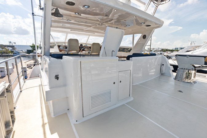 The oversized aft cockpit on El Legado provides a versatile space ideal for all kinds of water activities — from fishing and diving to canoeing and snorkeling. A BBQ, complete with countertop and sink, is built into the cockpit, allowing you to prepare and enjoy meals outdoors under the sun or stars.