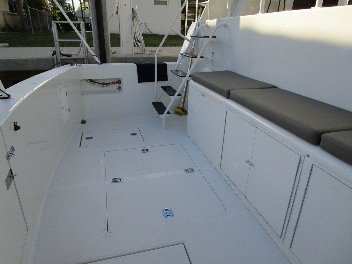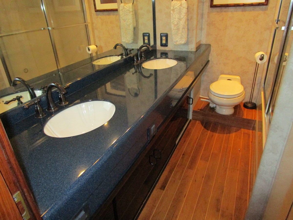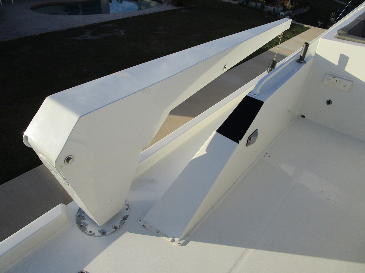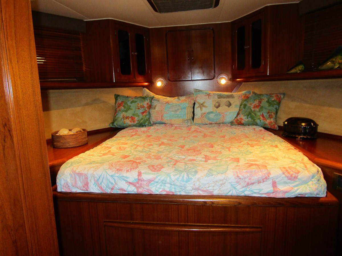 Looking more closely, one finds the Viking flagship of the era with higher end finishes, an improved layout, a spectacular flybridge and of course all the benefits a cockpit offers cruising warmer climates. Reported by Viking to be the only 70/72 with the raised FRP bulwarks. Besides the improved profile look, it makes it safer for children, pets and line handling on the bow.