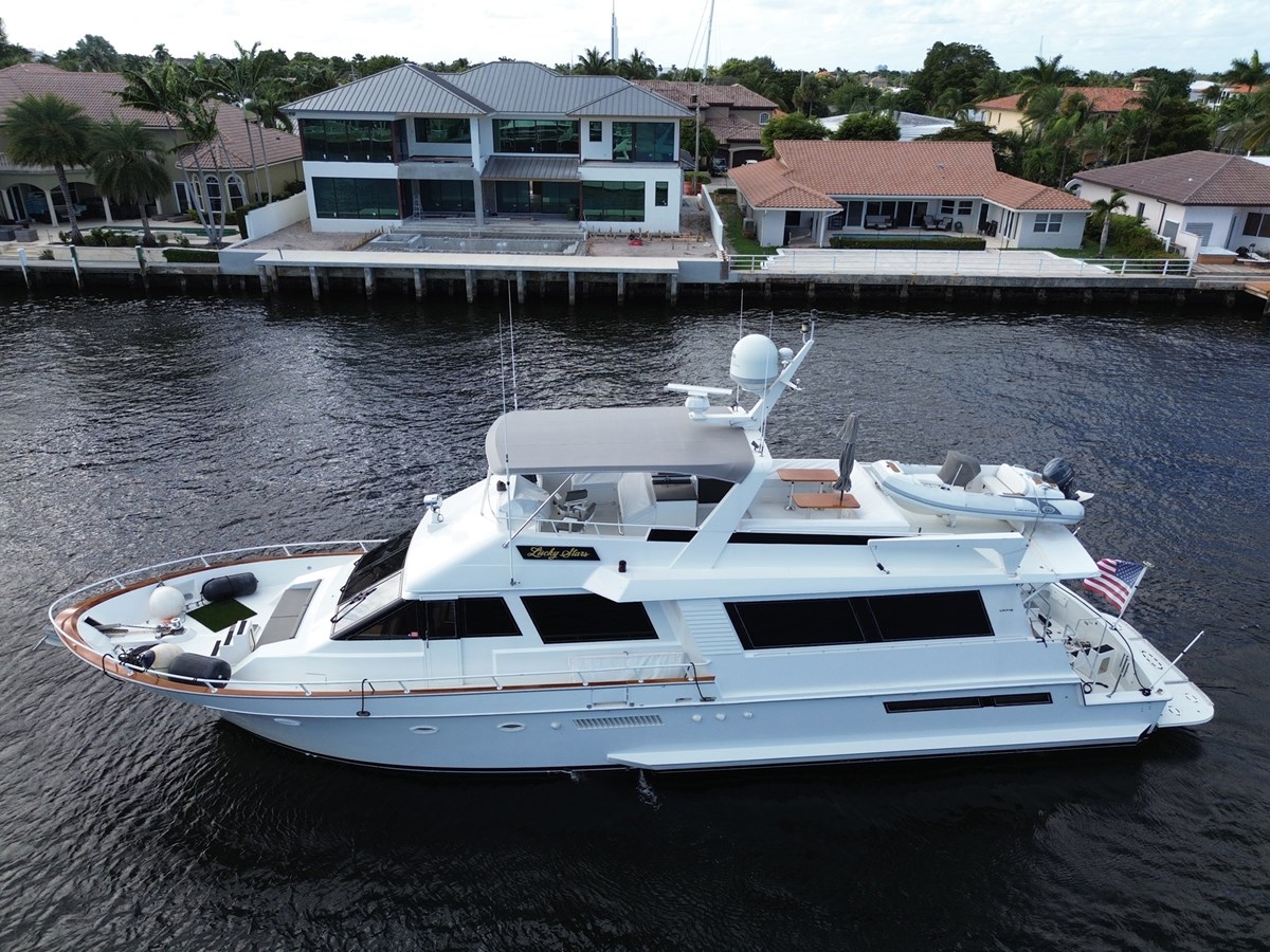 Prospective clients are highly encouraged to view a 70’ Hatteras MY or CMY before viewing LUCKY STARS . The standout features of LUCKY STARS will be evident! Amazing master suite, huge flybridge and the cockpit/hydraulic platform are standout features.