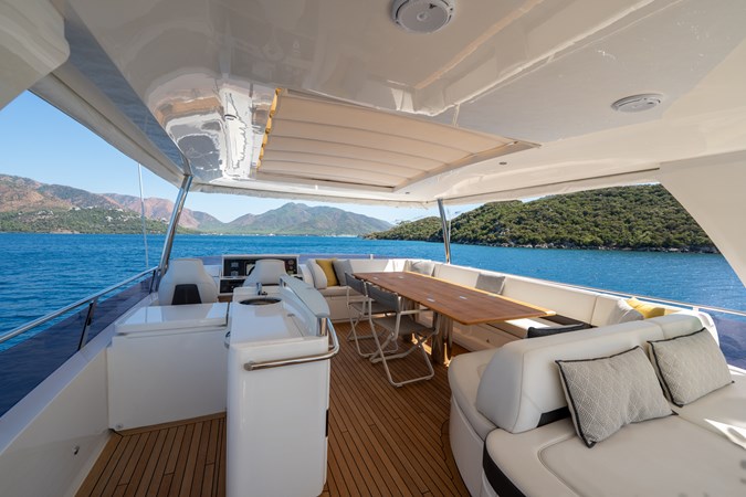 The fly bridge and the fore deck areas are well designed, delivering the best of functionality and comfort.