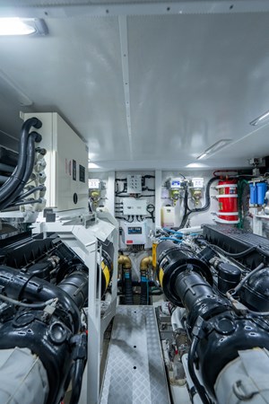 Below deck, the layout consists of four guest cabins and three ensuites. The master cabin is full beam, whilst the master ensuite is nearly 3/4 of the full beam of the yacht.