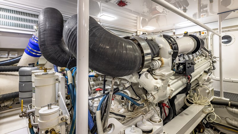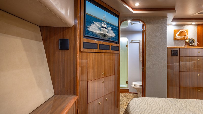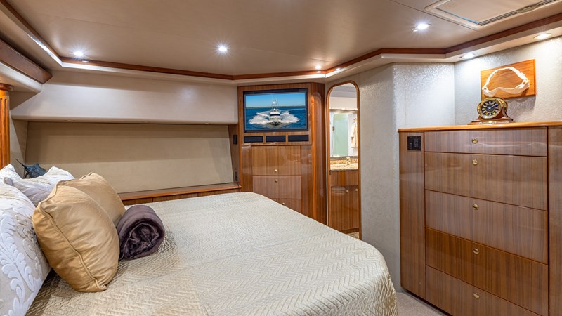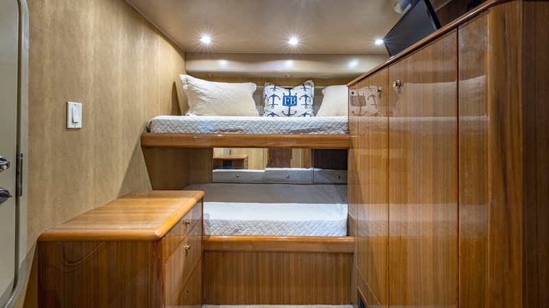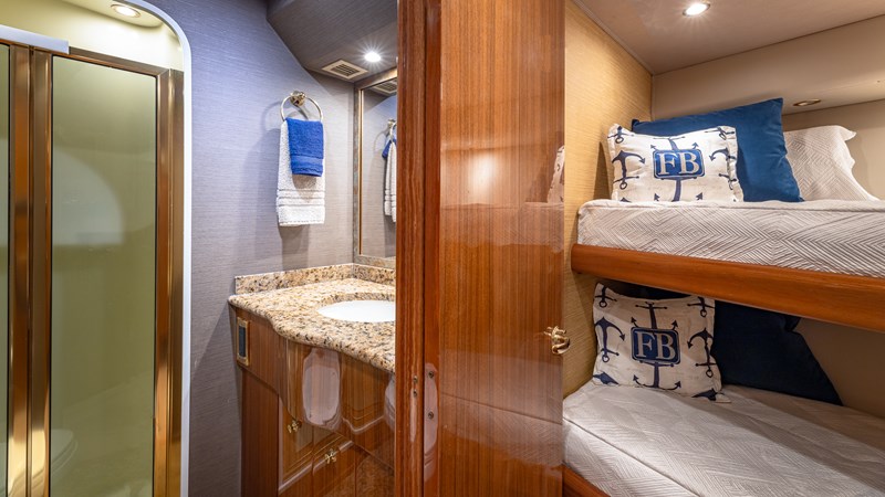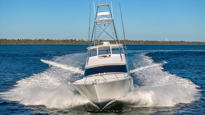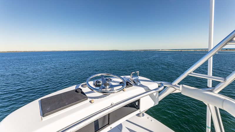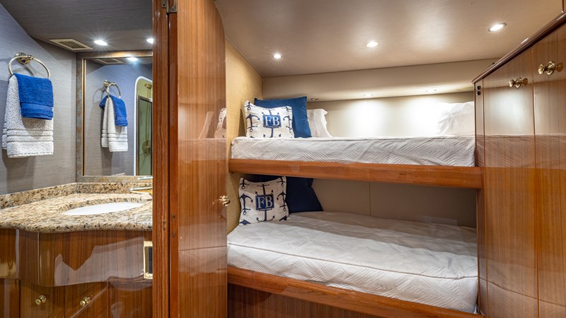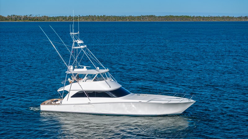 FIRST BITE is a 2004 74′ convertible Viking with a model year of 2005. She has a fiberglass hull and maximum speed of 29 knots and cruising speed of 25 knots. She has x2 MTU Diesel engines with 2000 Hp. She has a hydraulic steering system and new batteries. Domestic 2 chiller air-conditioning system.