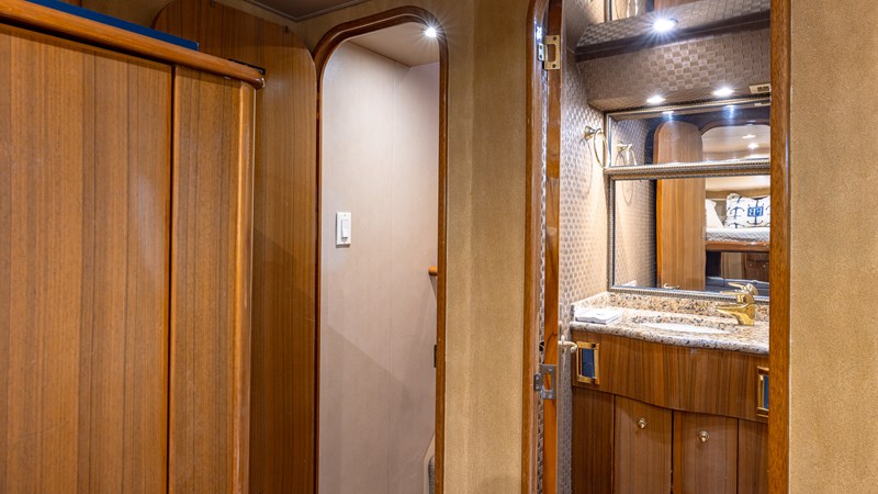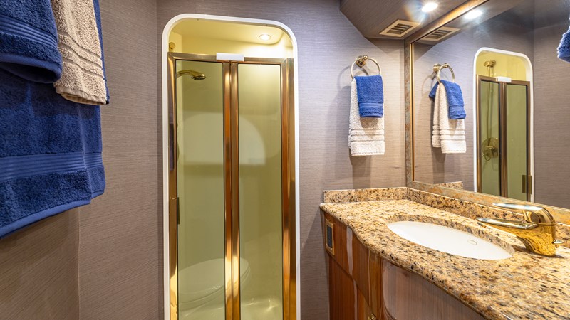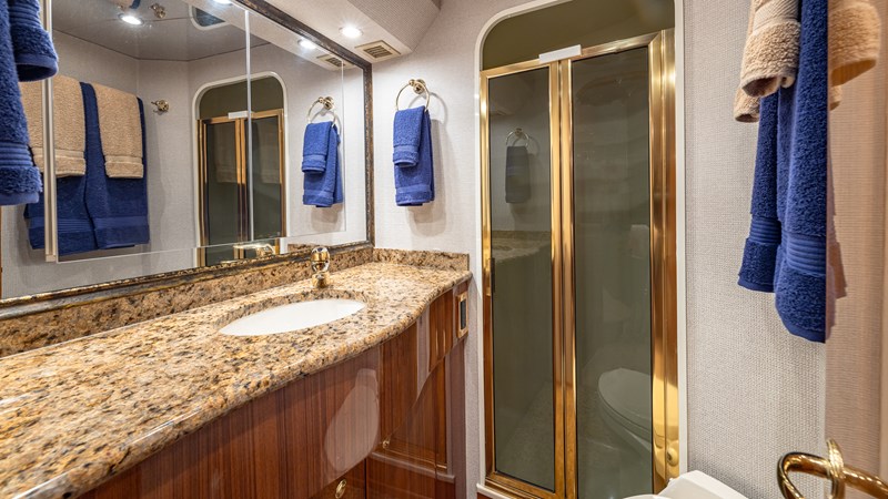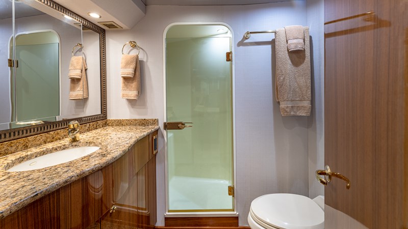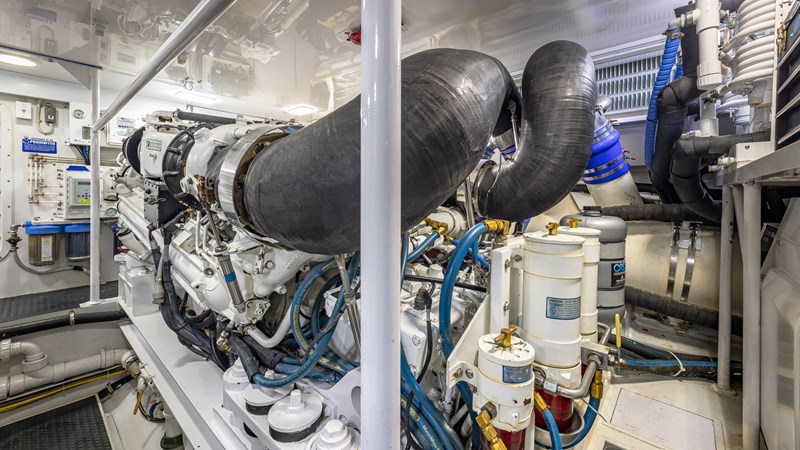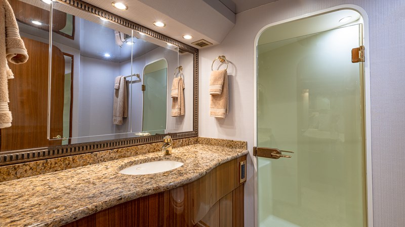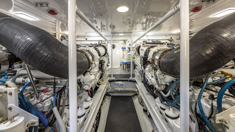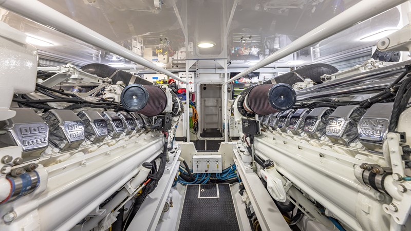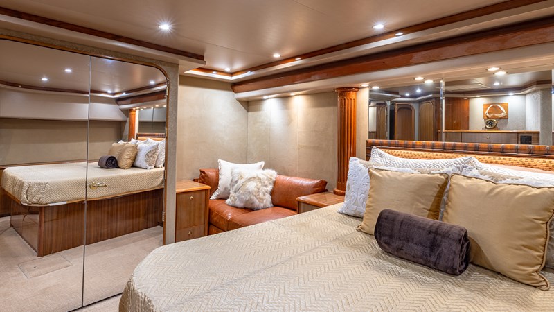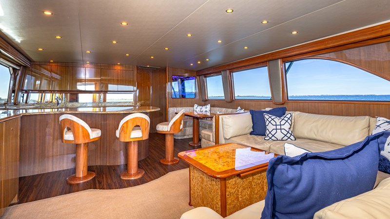 FIRST BITE is a 2004 74′ convertible Viking with a model year of 2005. She has a fiberglass hull and maximum speed of 29 knots and cruising speed of 25 knots. She has x2 MTU Diesel engines with 2000 Hp. She has a hydraulic steering system and new batteries. Domestic 2 chiller air-conditioning system.