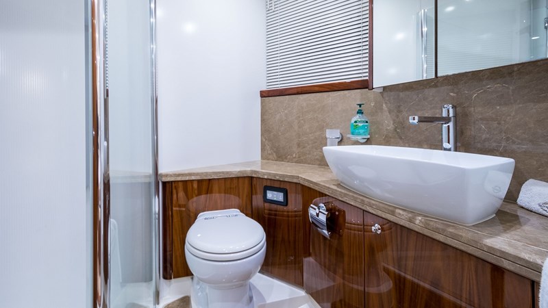â—‹ Four stateroom layout, featuring full bead master amidships, forward VIP, starboard double stateroom, port twin stateroom and an aft-access crew cabin