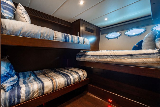The fourth stateroom serves as a guest stateroom with two single beds and one double bed. This is great for the kids to enjoy their own space.