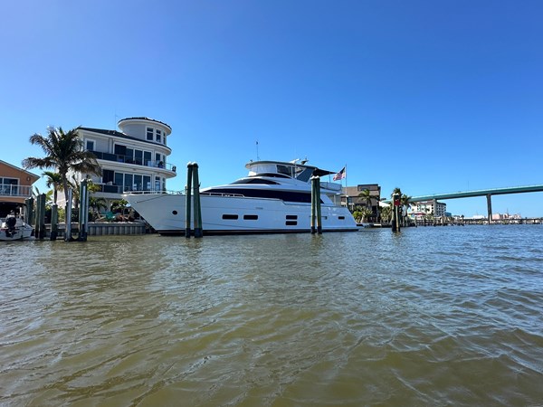 Highly upgraded original owner 75 Panacera. This vessel has a recently added hydraulic lift as well as an original bridge davit. She just completed a refit and yard session, new electronics, Awlcraft paint from waterline up. Redundant systems through out which were engineered for stress free cruising. Dockside AC cooling tower so vessels AC system does not run sea water for cooling while dockside. Great service records, Starlnk, Yacht Controller, new soft goods, new acrylic enclosure, 9 solar panels on topside of hardtop, inverter, upgraded ground tackle, zero speed stabilizers. This boat is as dialed in as she could be, sure to impress. See description in body of the listing for additional info.