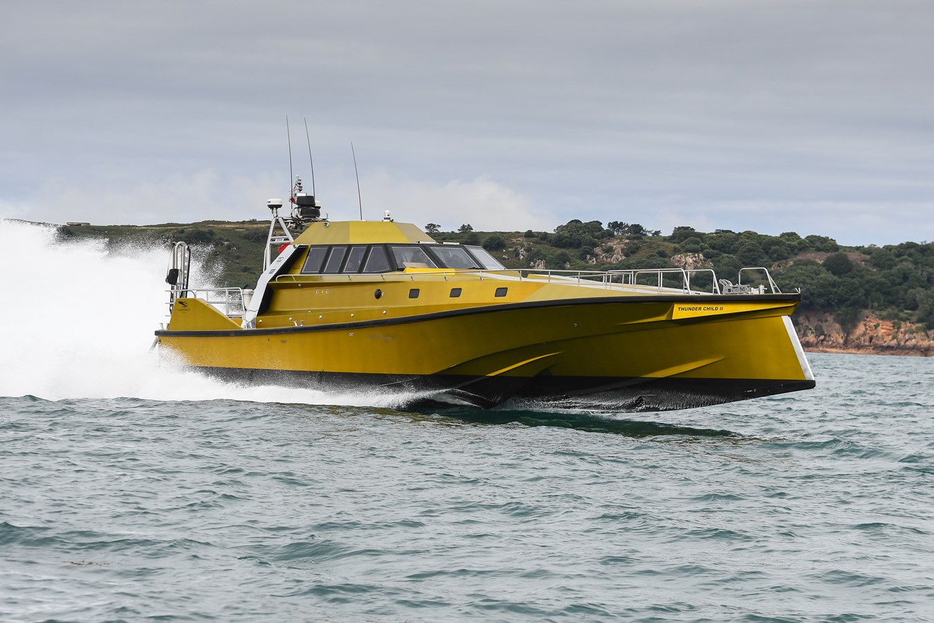 Experience the cutting edge of marine engineering with the M/Y THUNDER CHILD II, Safehaven Marine’s revolutionary XSV20. This 23-meter vessel is not just a yacht; it’s a patented hybrid marvel, seamlessly blending trimaran stability with monohull wave-piercing prowess. Propelled by powerful Caterpillar engines and an innovative hydrofoil system, she carves through waves at exhilarating speeds of up to 54 knots, offering unparalleled seakeeping and fuel efficiency. Built with military-spec composites capabilities, the THUNDER CHILD II is a record-breaking, unsinkable force designed for extreme offshore conditions and ultimate performance.