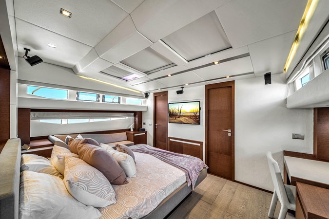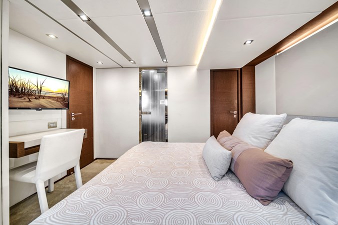 4 staterooms with a main-deck master which is extremely rare in a yacht this size, 3 heads + crew quarter for 2 with ensuite. Full beam VIP, would be the master on most vessels this size!