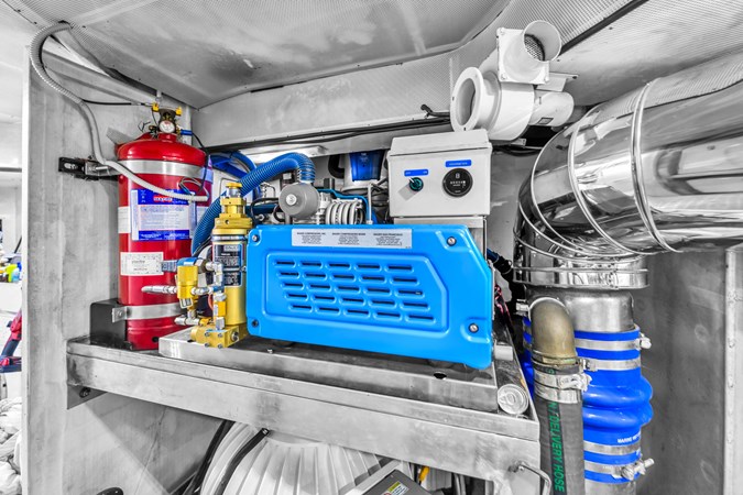 LOADED with- Seakeeper 8 Gyro, Watermaker, Full size Washer/Dryer, Bauer Scuba tank dive compressor/fill system with self draining capabilities and all hoses and accessories. Flybridge with Icemaker, grill and refrigerator, additional ice maker in cockpit, drinks locker in saloon and wine fridge for 24 bottles of your favorite wine! Additional electric canopy in the aft flybridge area and electric sunshade in the cockpit.