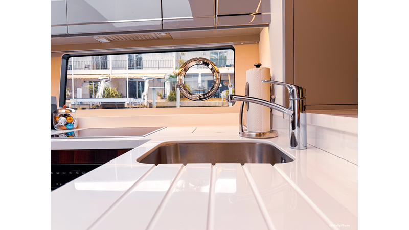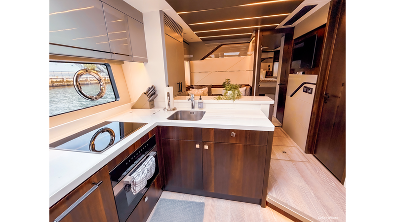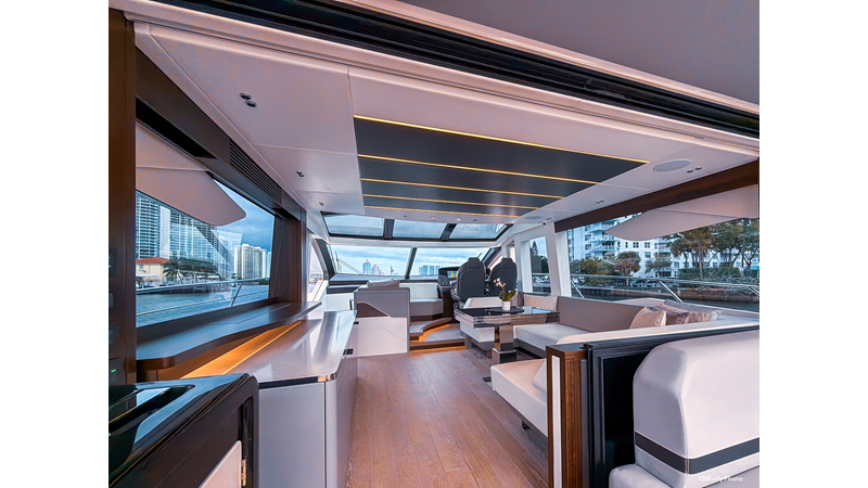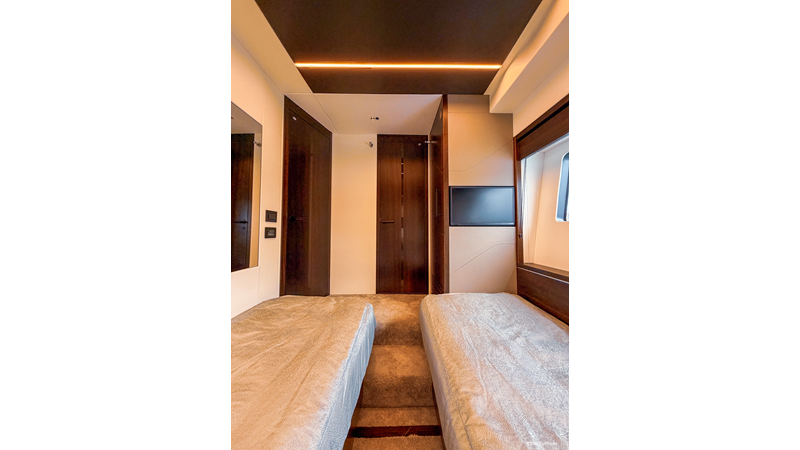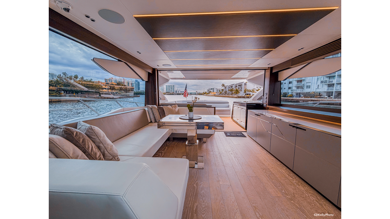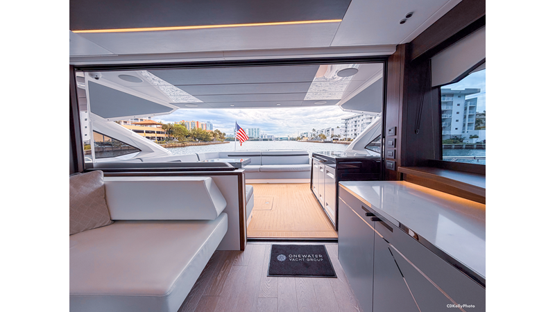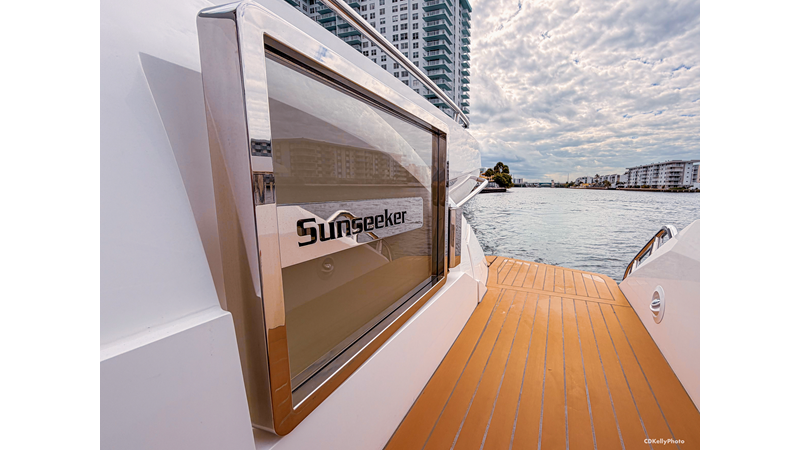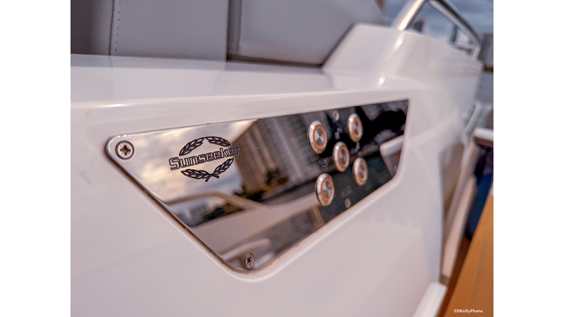 Impeccable Sunseeker Predator 75 featuring extended MAN engine warranties through March 2029, plus a 6-Year BPP Yacht Class Warranty covering electronic navigation systems, generator, and thrusters.