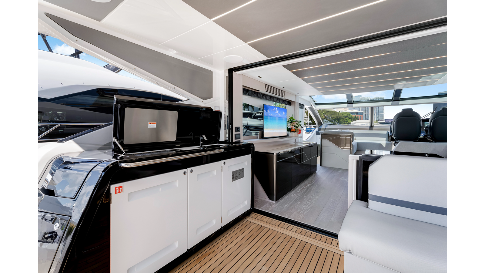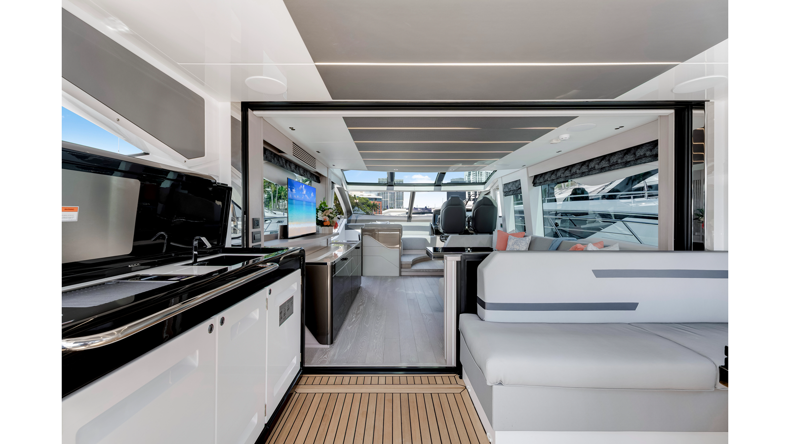 The Predator 75 is a bold, performance-oriented yacht with unmistakable Sunseeker presence. Her dramatic profile, expansive deck spaces, and refined interior create a balance of adrenaline and luxury. Designed for owners who enjoy both spirited cruising and relaxed entertaining, the Predator 75 delivers capability, comfort, and timeless sport-yacht styling.