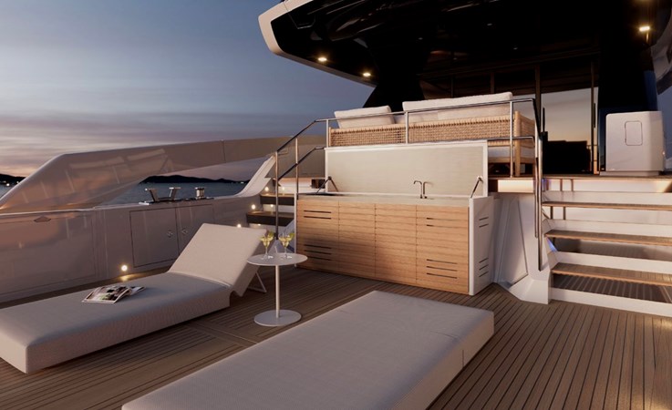 The Sanlorenzo SX76 is a luxury 23.75 m (78 ft) crossover motor yacht that blends the classic elegance of a flybridge yacht with the adventurous spirit of an explorer-style vessel. Designed by Studio Zuccon International with interiors by Piero Lissoni, it maximizes onboard space with an open, social layout, expansive windows, and a large aft deck — ideal for family cruising and entertaining. Accommodating up to 8 guests in refined cabins plus crew quarters, the SX76 delivers smooth performance with twin Volvo Penta IPS drives for a top speed around 22 knots and efficient cruising capability, all wrapped in Sanlorenzo’s signature Italian style and craftsmanship.
