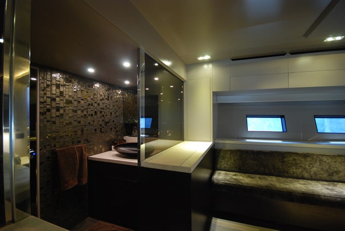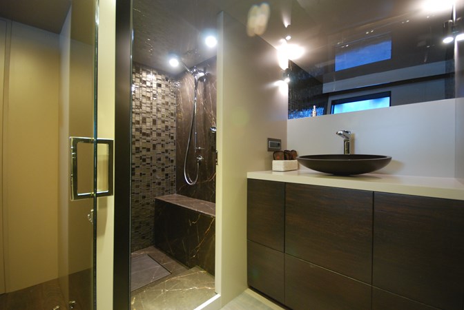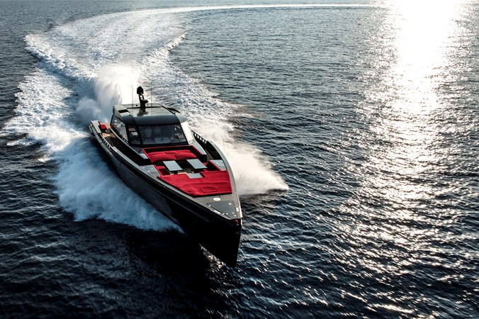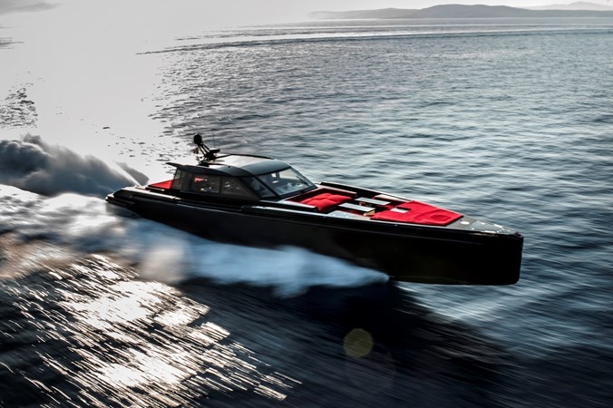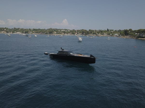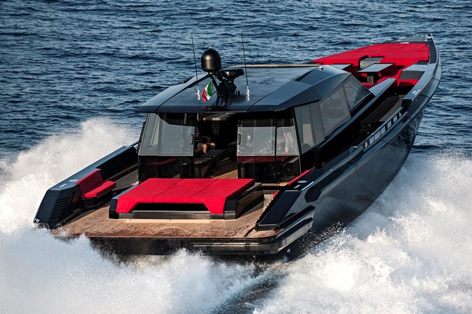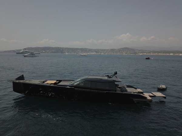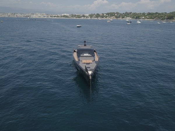 G is the fast cruiser that always stands out from the crowd! Her modern exterior lines and trick deep gloss black paint never fail to turn heads whenever she is in port. She serves equally well as a day/weekend boat or a pocket superyacht with large deck spaces, well-appointed luxury interior and breath-taking performance.