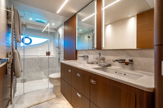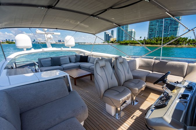 The 78’ Princess S78 COCOON, is a sleek and powerful sportbridge yacht offering thrilling performance up to 32 knots and stylish, contemporary design throughout. Her layout is optimized for outdoor living, with multiple sunlounging areas, a hydraulic swim platform with central access, and a convertible foredeck lounge. Inside, large panoramic windows flood the main saloon with natural light, while the well-appointed galley and flexible dining area create an inviting social hub. Below deck, she accommodates up to eight guests in four en suite staterooms, including a full-beam master, plus an additional aft cabin for crew or occasional guests. A NAIM audio system and ambient lighting complete the onboard experience, making COCOON a standout in the Princess S Class.