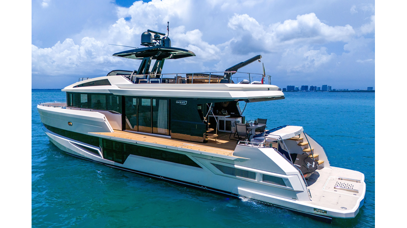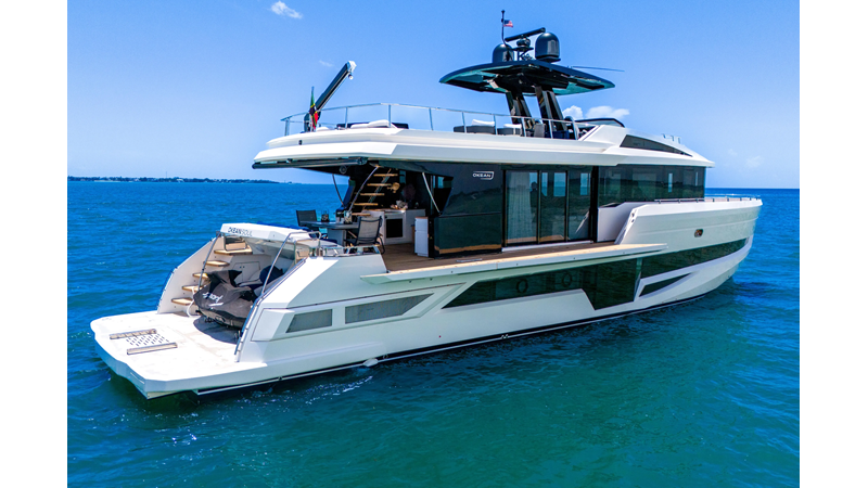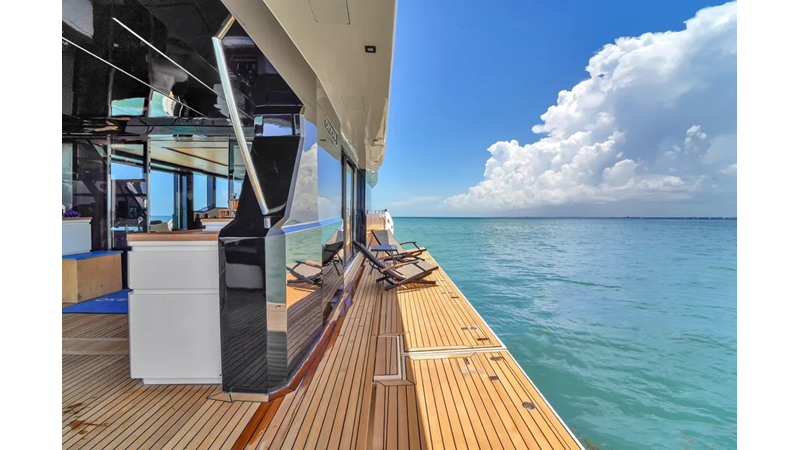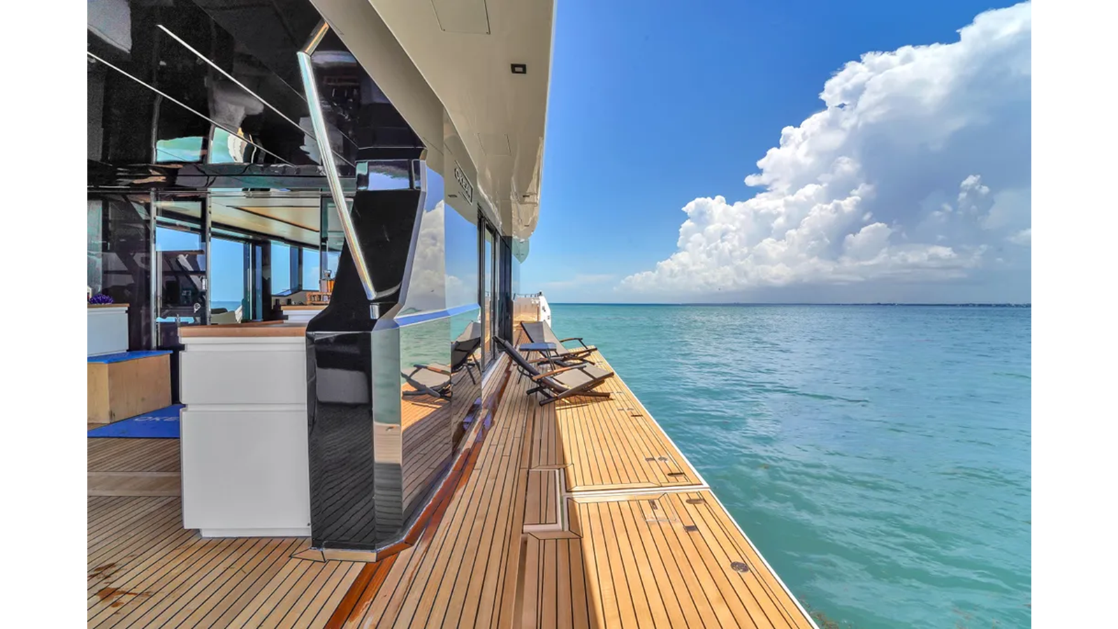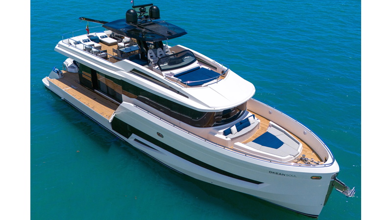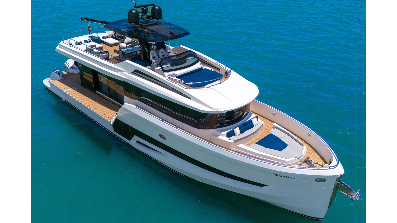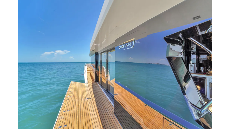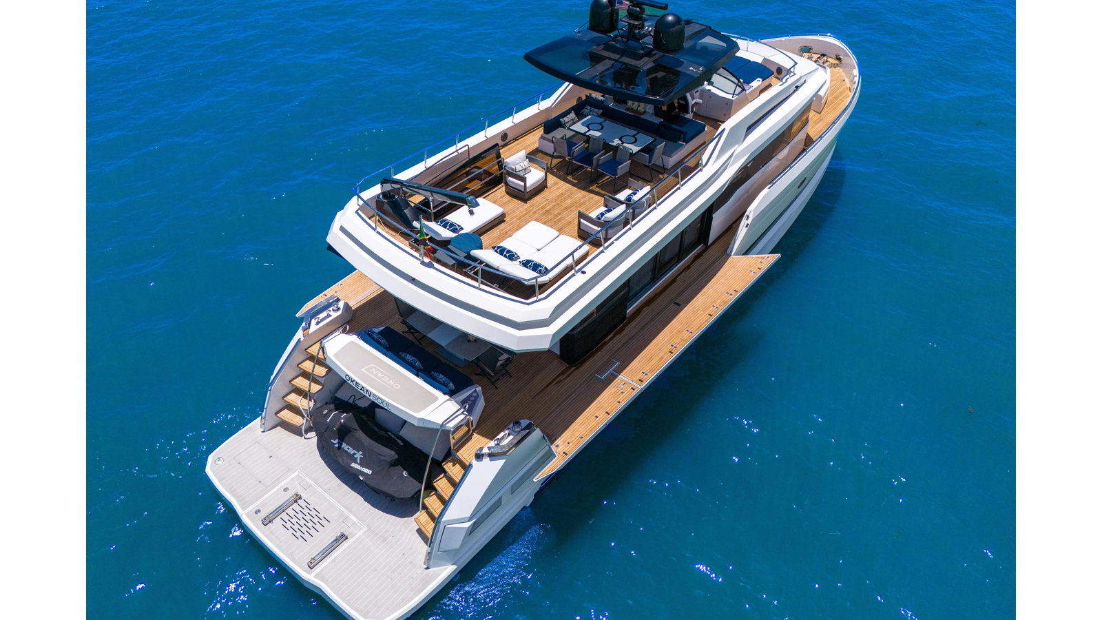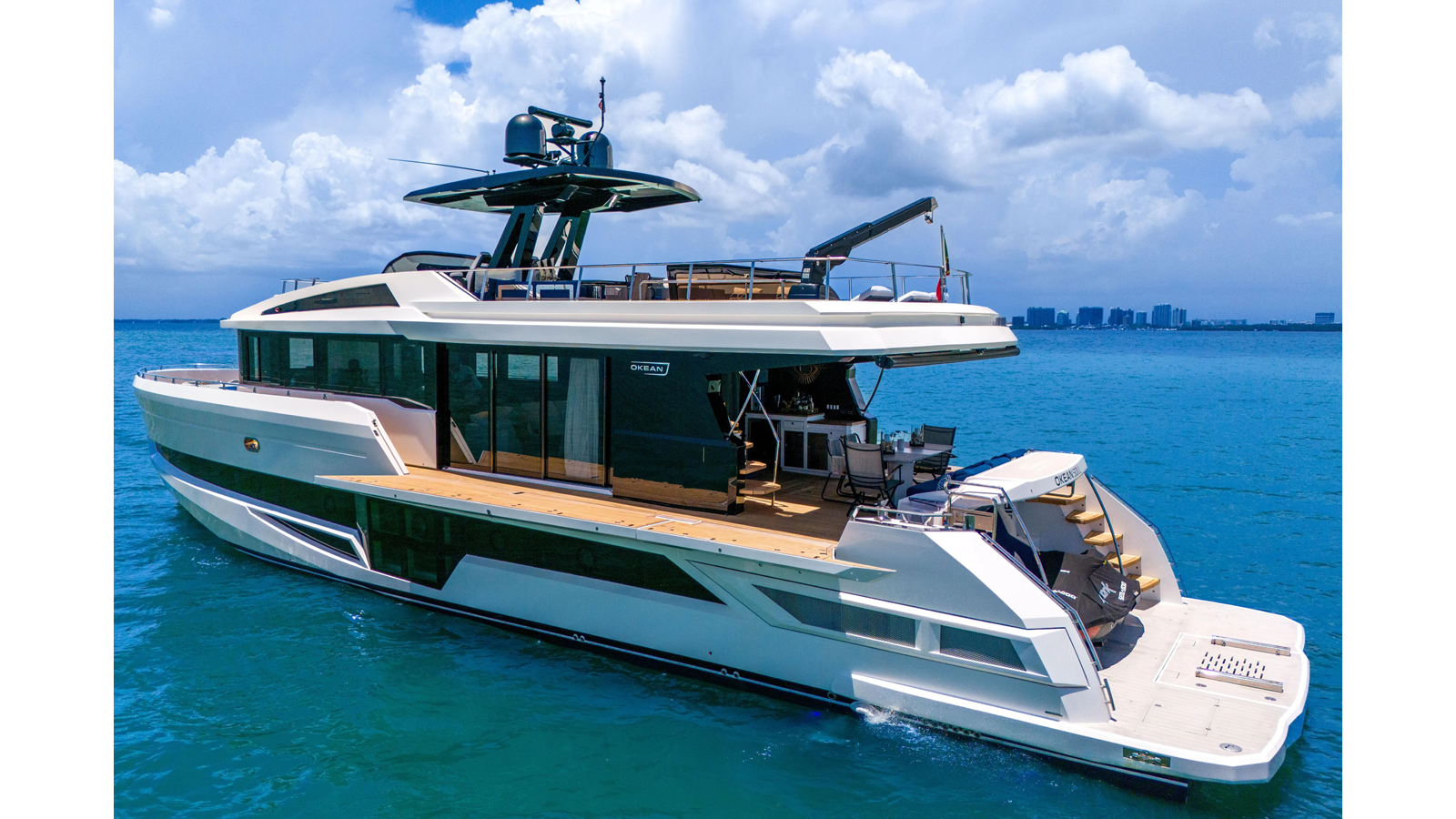 Let nature flow. This is the OKEAN 80 Yacht Lounge concept. It allows all deck doors to open completely, integrating the indoor and outdoor environments, creating a terrace for you to enjoy with up to 30 guests over the sea. Nearby is the Beach Club at the stern of OKEAN 80. The multiple positions the submersible sliding platform offers allow you to establish a new relationship with the ocean. Dive safely, experience nature intensely, and return to the boat comfortably.