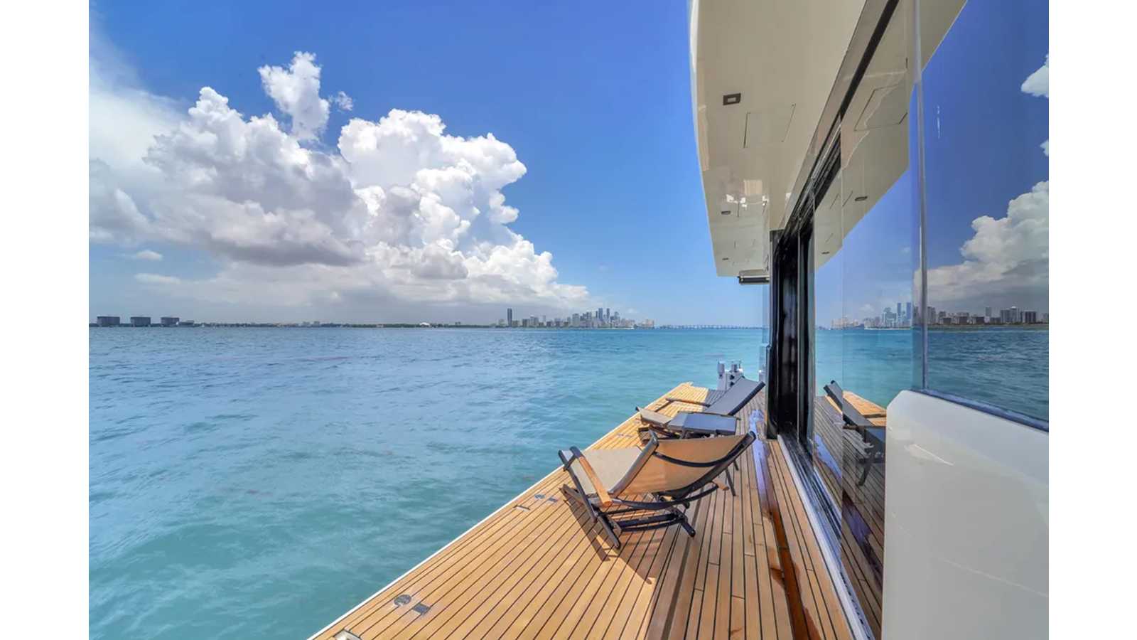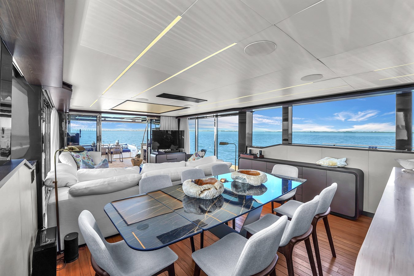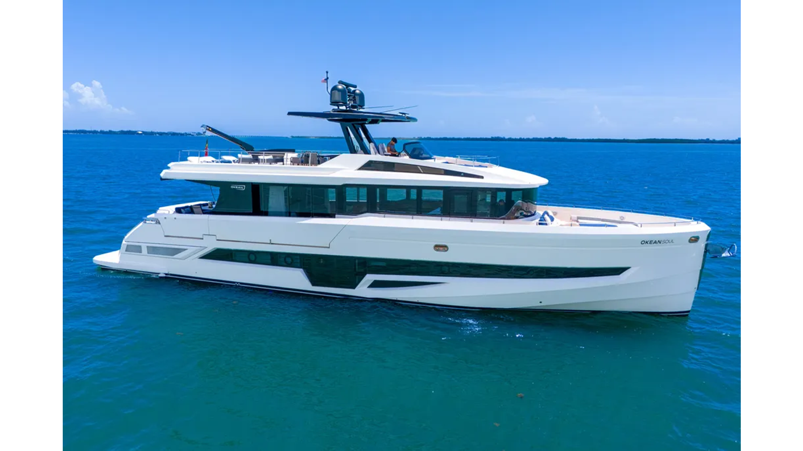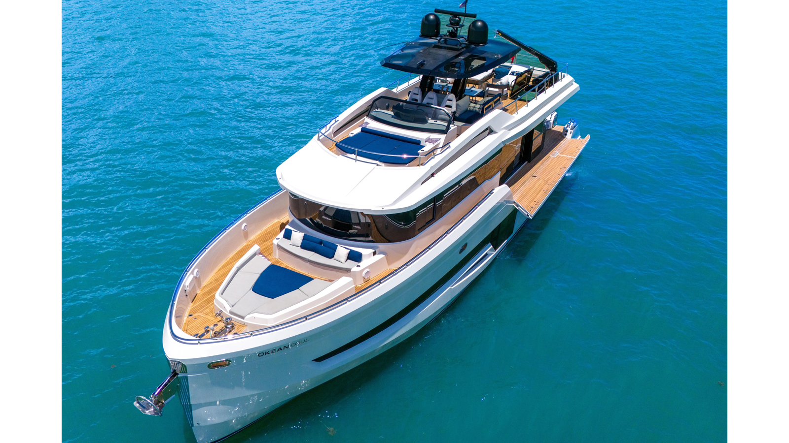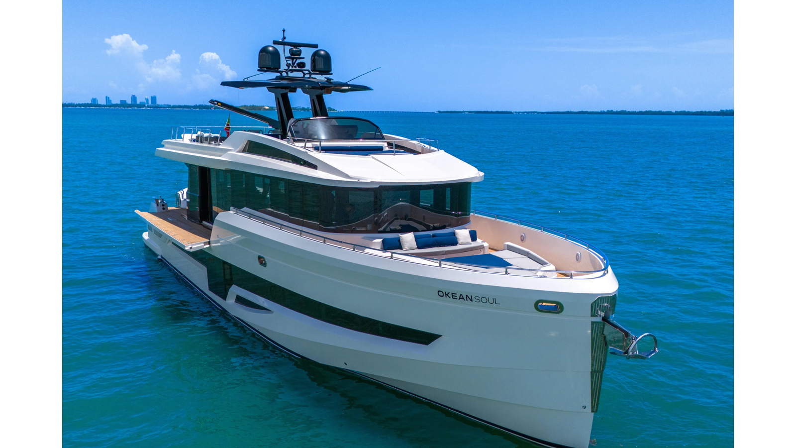 Let nature flow. This is the OKEAN 80 Yacht Lounge concept. It allows all deck doors to open completely, integrating the indoor and outdoor environments, creating a terrace for you to enjoy with up to 30 guests over the sea. Nearby is the Beach Club at the stern of OKEAN 80. The multiple positions the submersible sliding platform offers allow you to establish a new relationship with the ocean. Dive safely, experience nature intensely, and return to the boat comfortably.