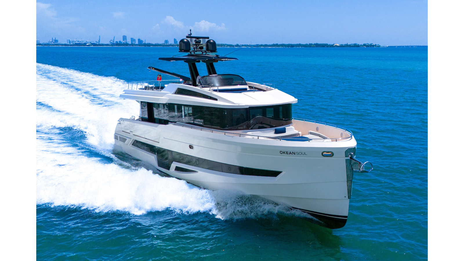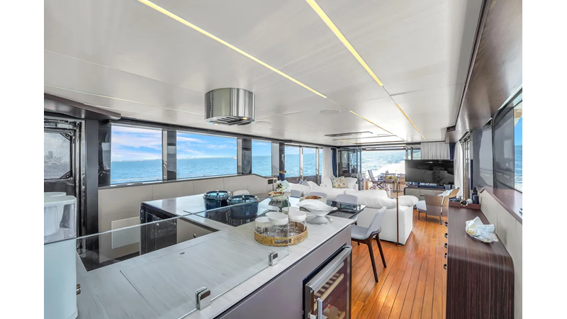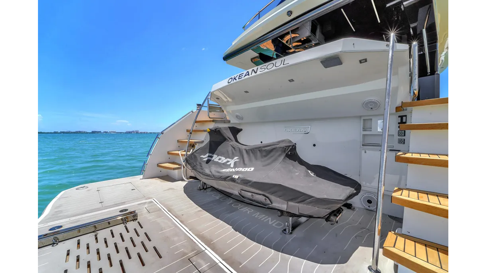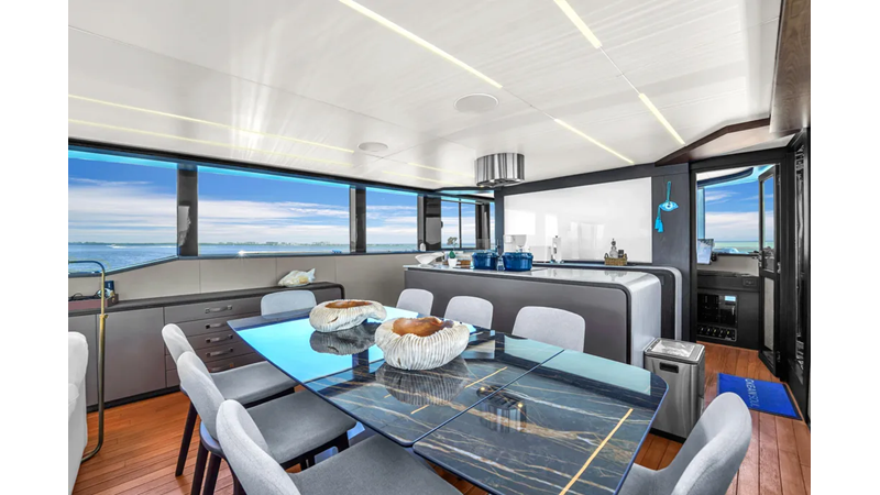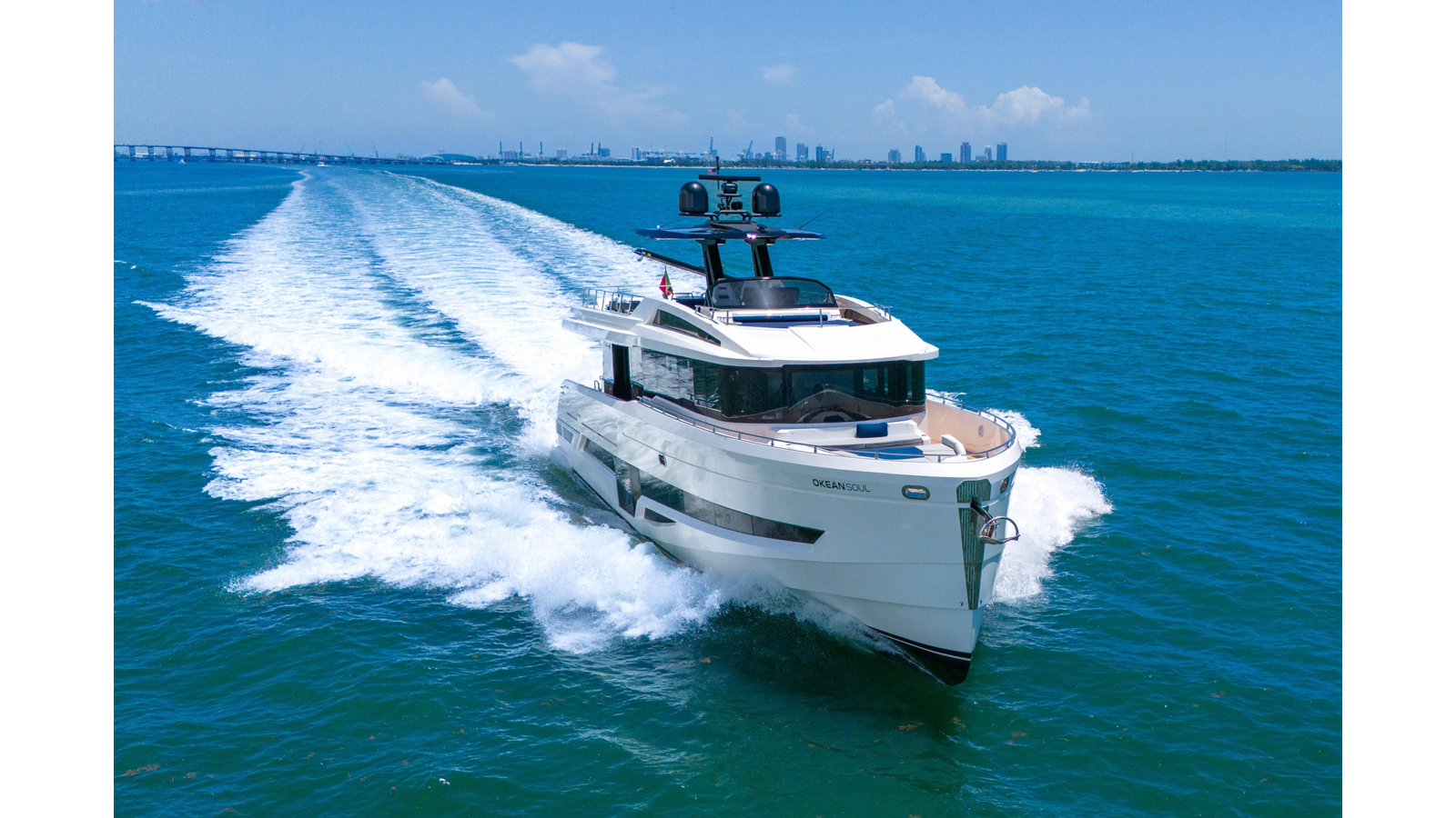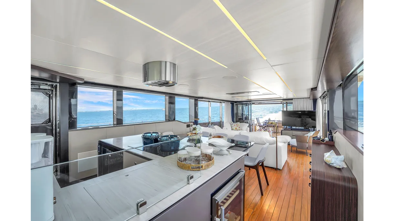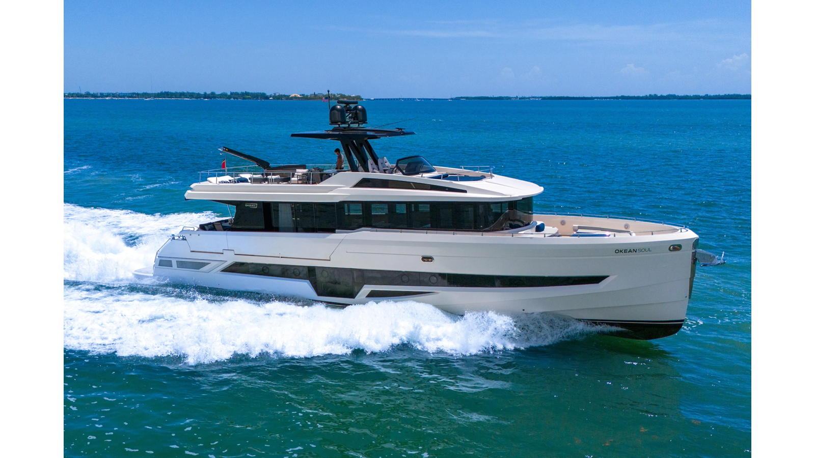 Let nature flow. This is the OKEAN 80 Yacht Lounge concept. It allows all deck doors to open completely, integrating the indoor and outdoor environments, creating a terrace for you to enjoy with up to 30 guests over the sea. Nearby is the Beach Club at the stern of OKEAN 80. The multiple positions the submersible sliding platform offers allow you to establish a new relationship with the ocean. Dive safely, experience nature intensely, and return to the boat comfortably.