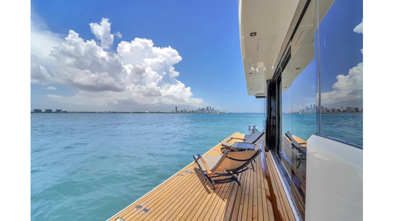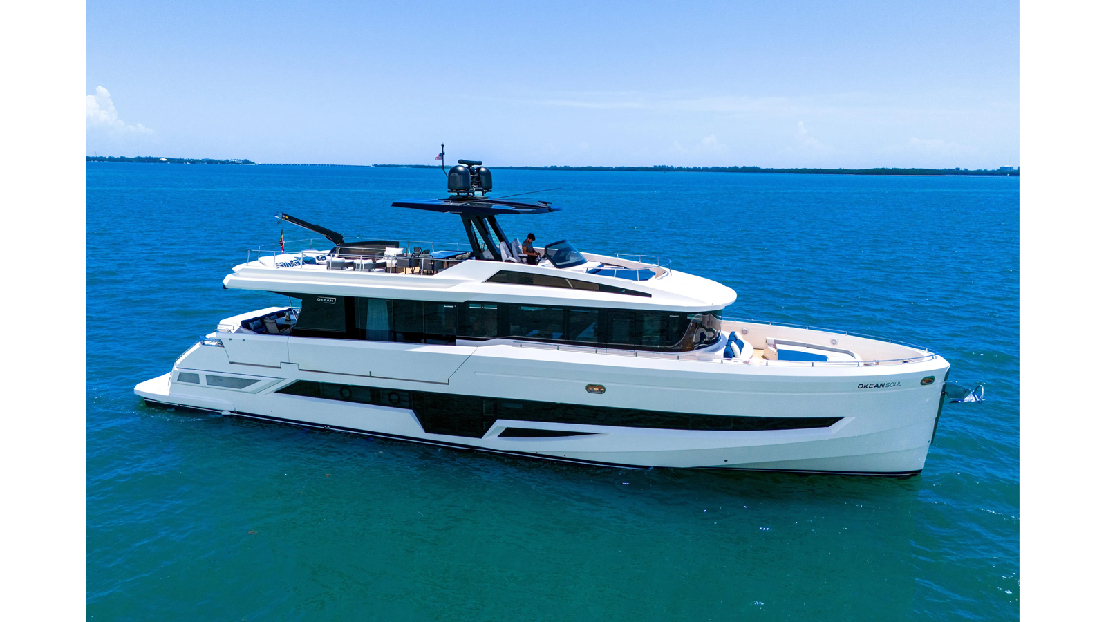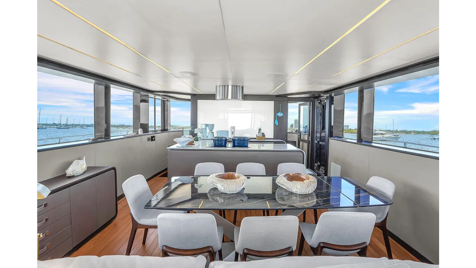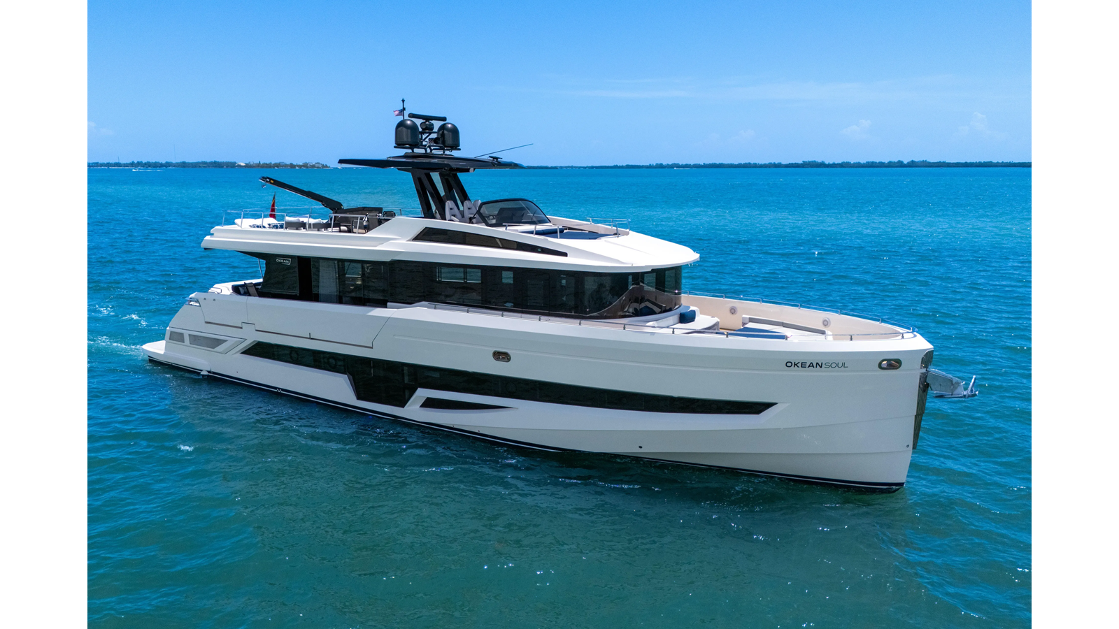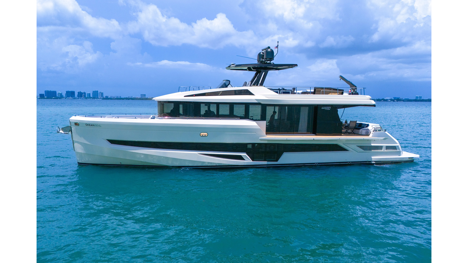 Let nature flow. This is the OKEAN 80 Yacht Lounge concept. It allows all deck doors to open completely, integrating the indoor and outdoor environments, creating a terrace for you to enjoy with up to 30 guests over the sea. Nearby is the Beach Club at the stern of OKEAN 80. The multiple positions the submersible sliding platform offers allow you to establish a new relationship with the ocean. Dive safely, experience nature intensely, and return to the boat comfortably.