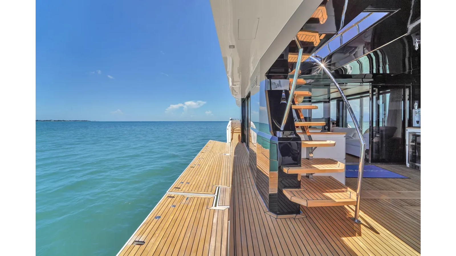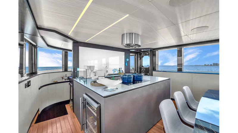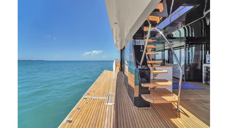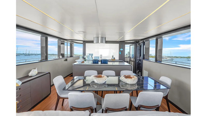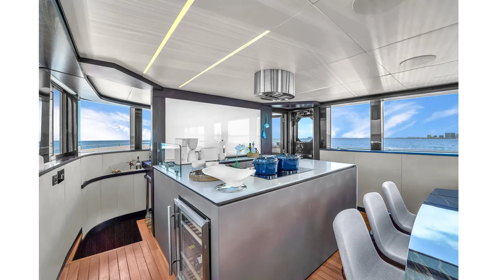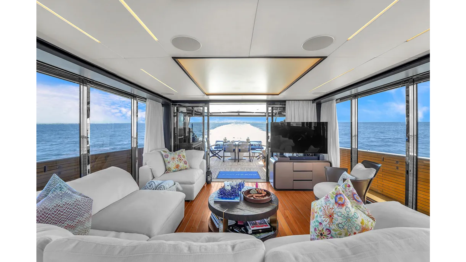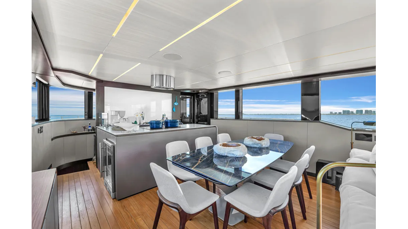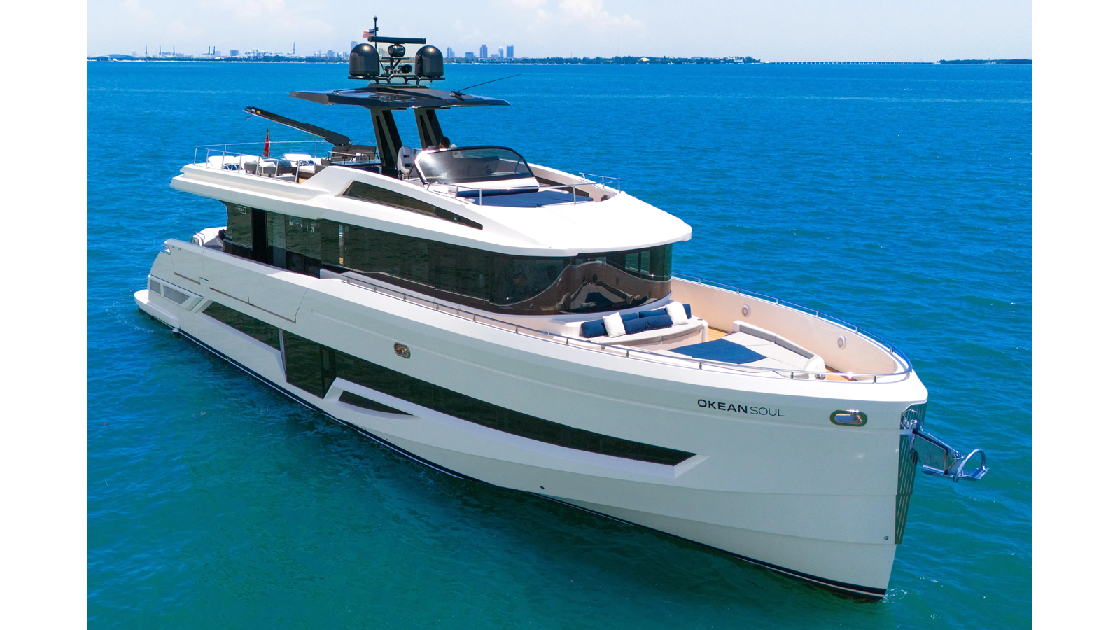 Let nature flow. This is the OKEAN 80 Yacht Lounge concept. It allows all deck doors to open completely, integrating the indoor and outdoor environments, creating a terrace for you to enjoy with up to 30 guests over the sea. Nearby is the Beach Club at the stern of OKEAN 80. The multiple positions the submersible sliding platform offers allow you to establish a new relationship with the ocean. Dive safely, experience nature intensely, and return to the boat comfortably.