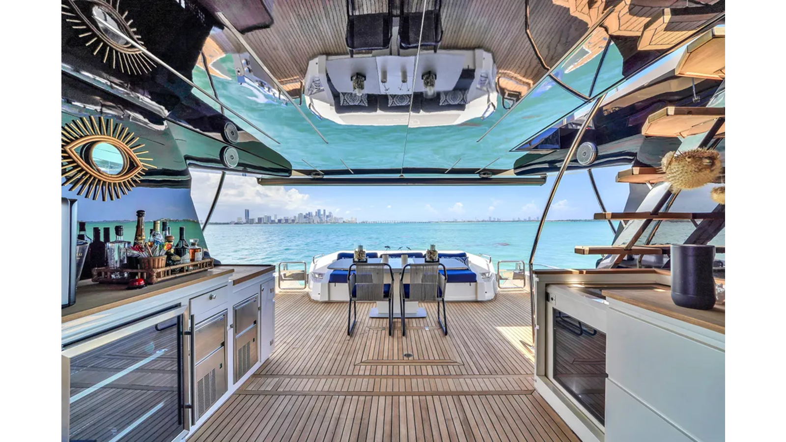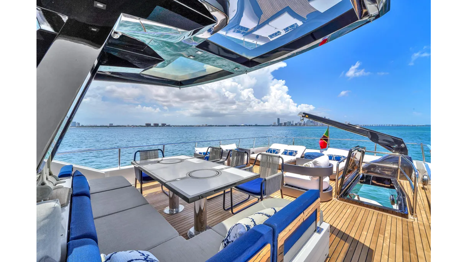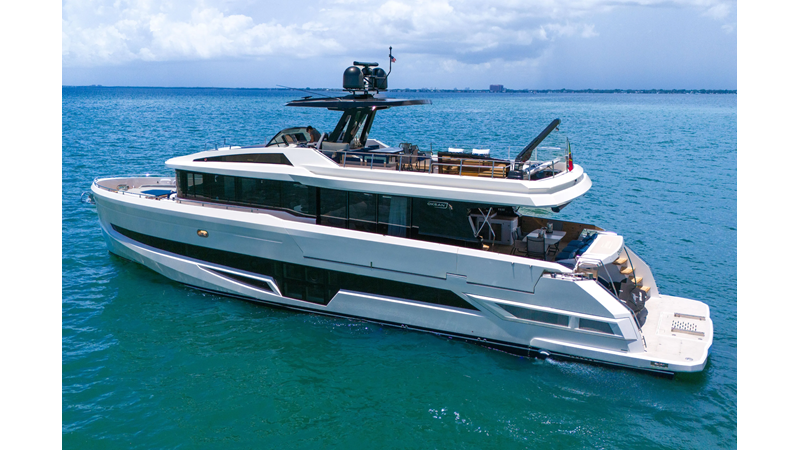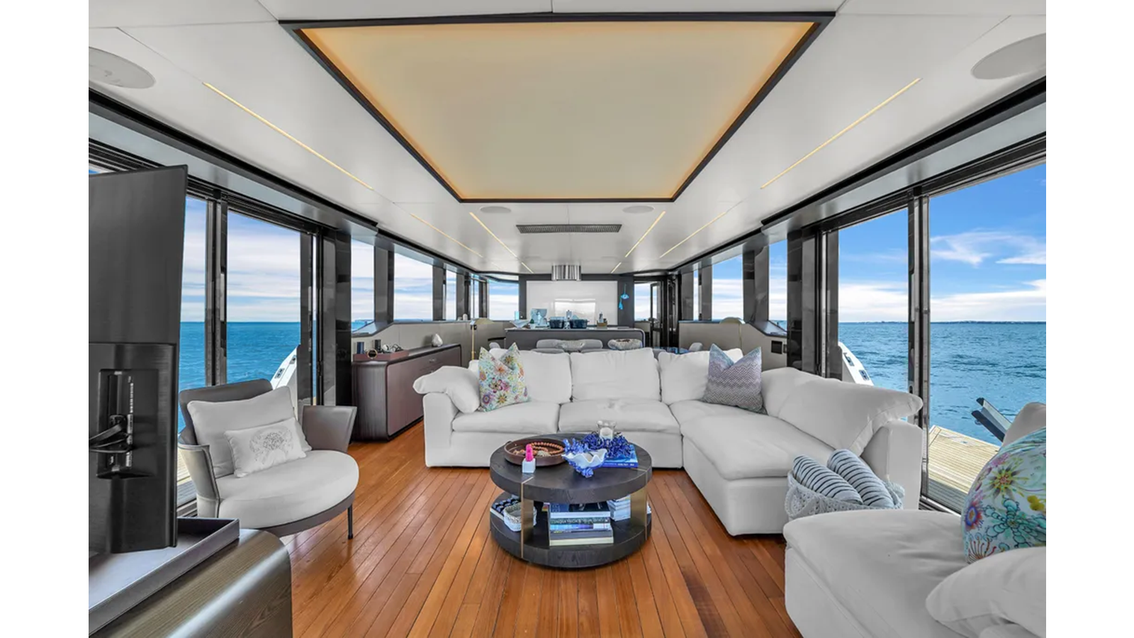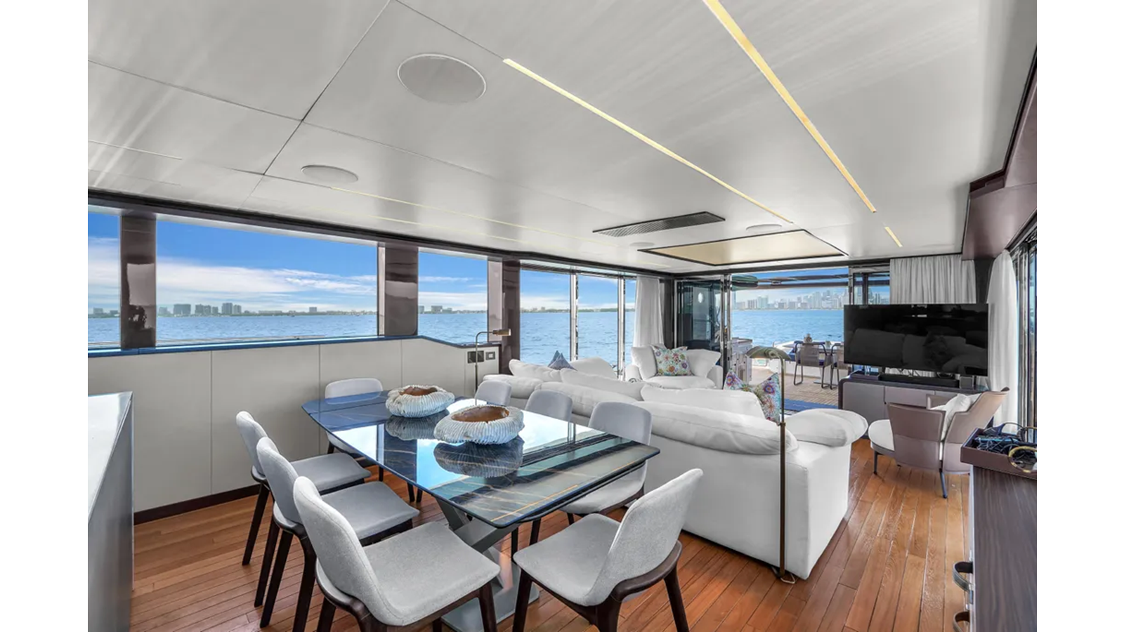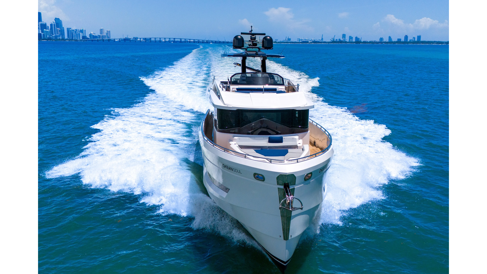 Let nature flow. This is the OKEAN 80 Yacht Lounge concept. It allows all deck doors to open completely, integrating the indoor and outdoor environments, creating a terrace for you to enjoy with up to 30 guests over the sea. Nearby is the Beach Club at the stern of OKEAN 80. The multiple positions the submersible sliding platform offers allow you to establish a new relationship with the ocean. Dive safely, experience nature intensely, and return to the boat comfortably.