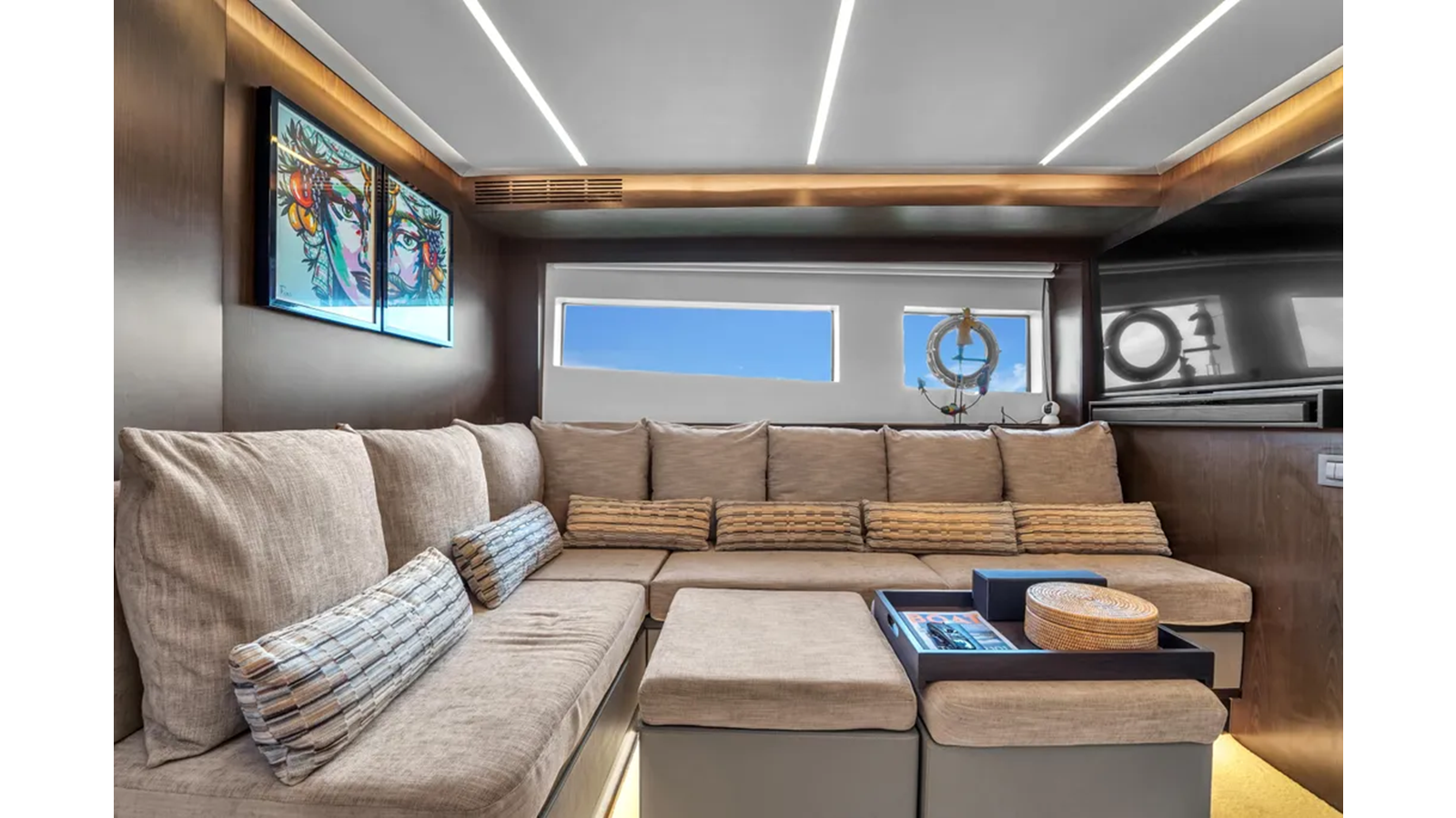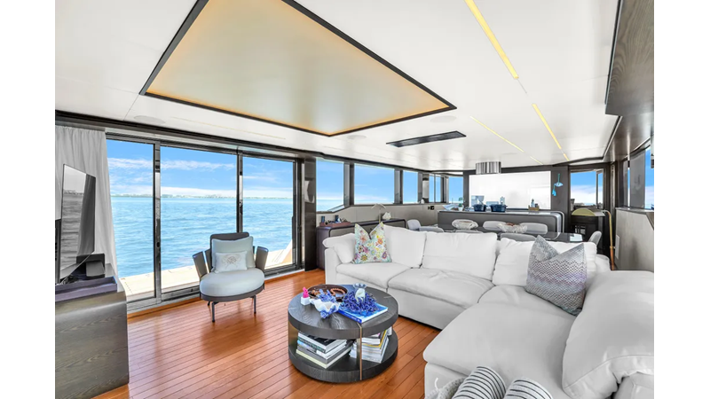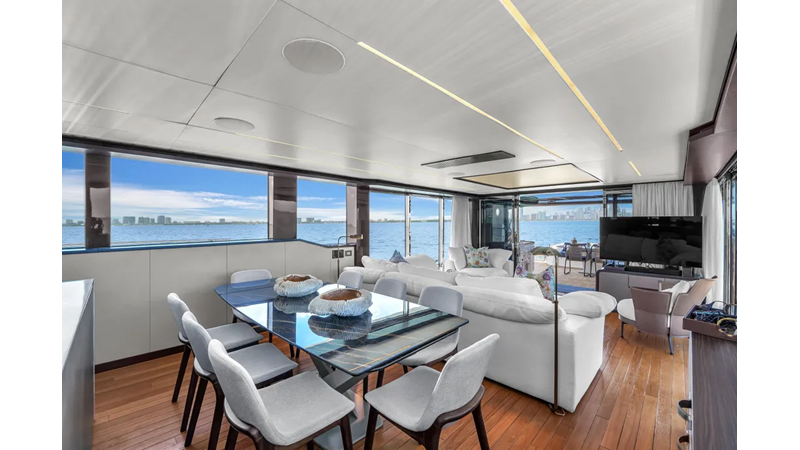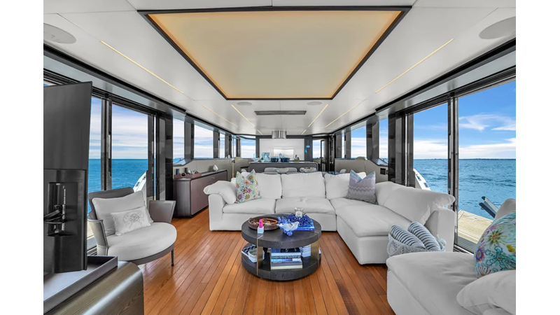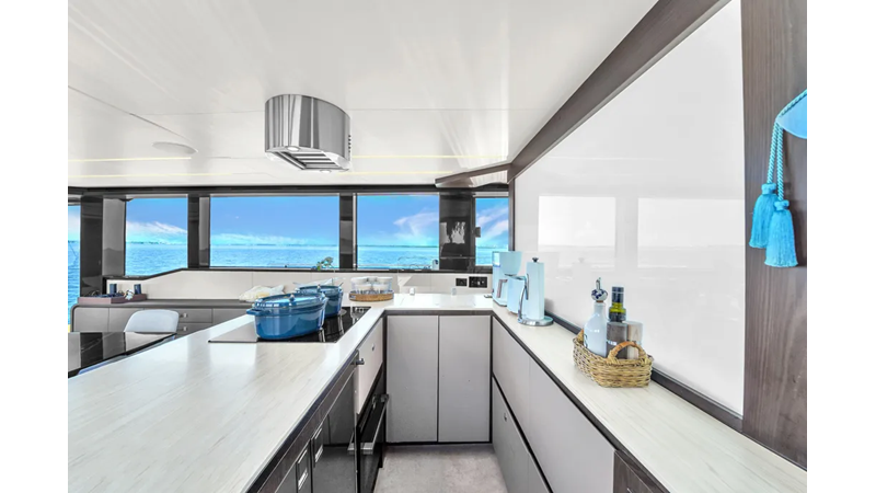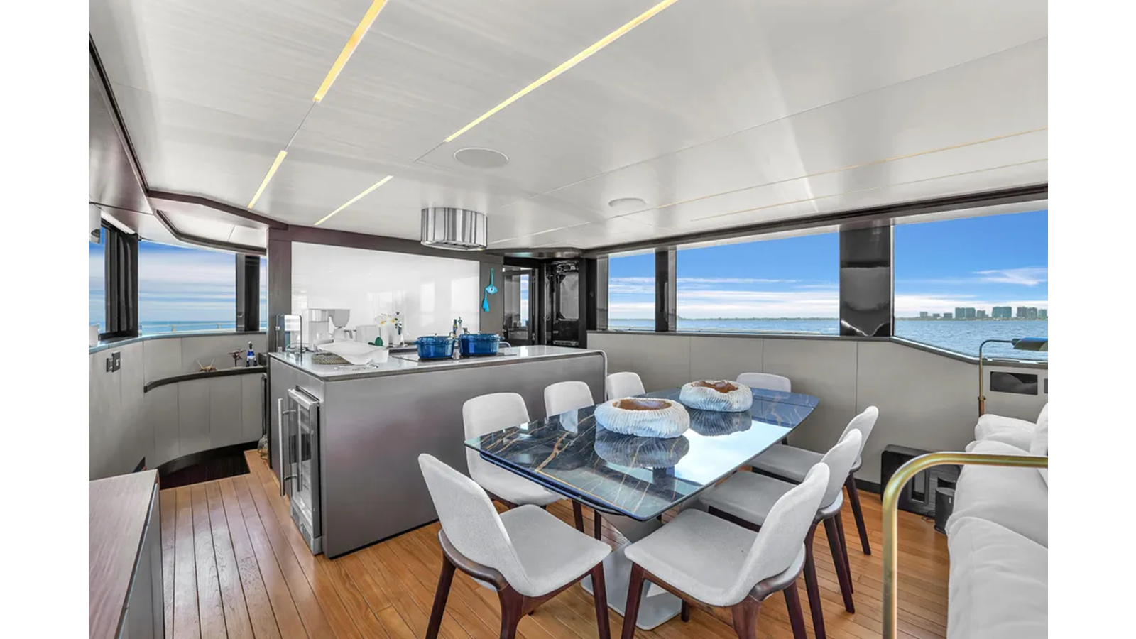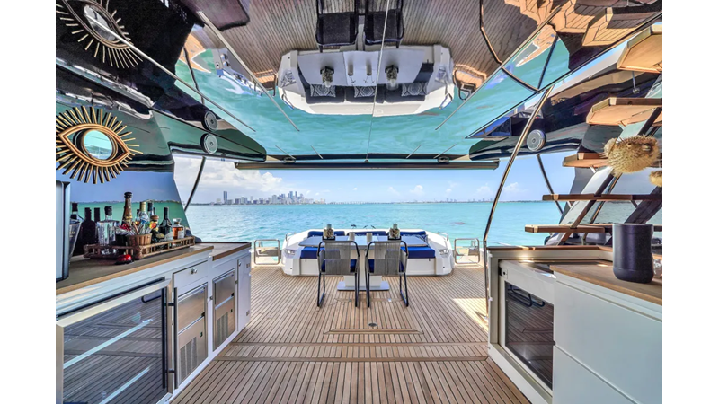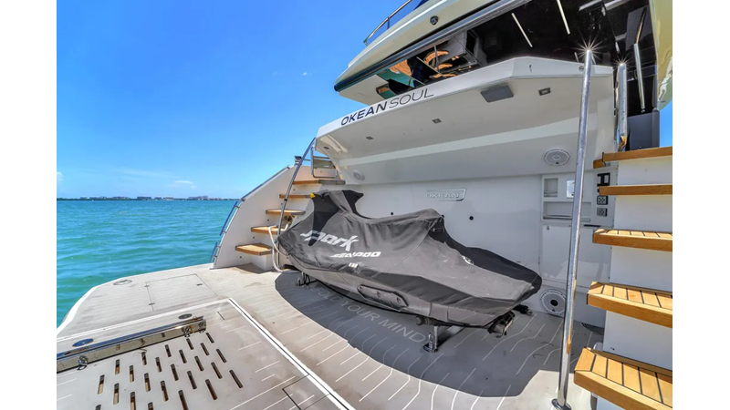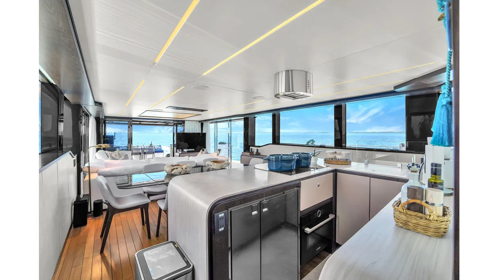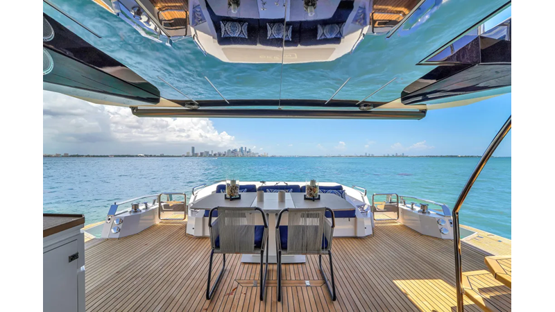 Let nature flow. This is the OKEAN 80 Yacht Lounge concept. It allows all deck doors to open completely, integrating the indoor and outdoor environments, creating a terrace for you to enjoy with up to 30 guests over the sea. Nearby is the Beach Club at the stern of OKEAN 80. The multiple positions the submersible sliding platform offers allow you to establish a new relationship with the ocean. Dive safely, experience nature intensely, and return to the boat comfortably.