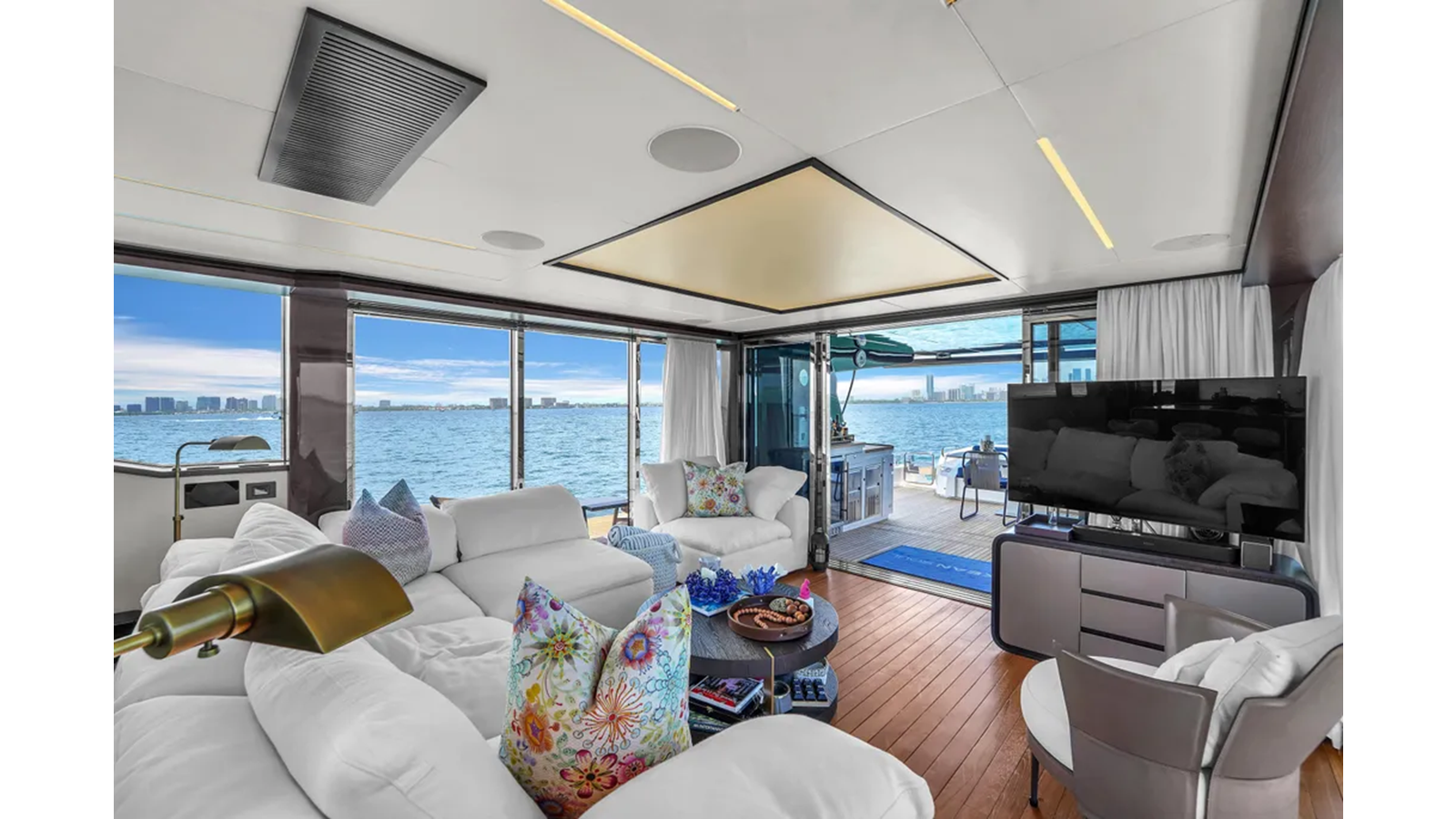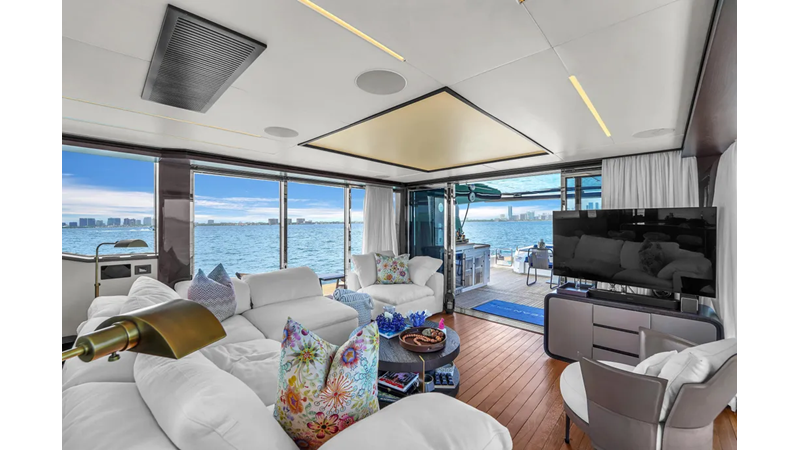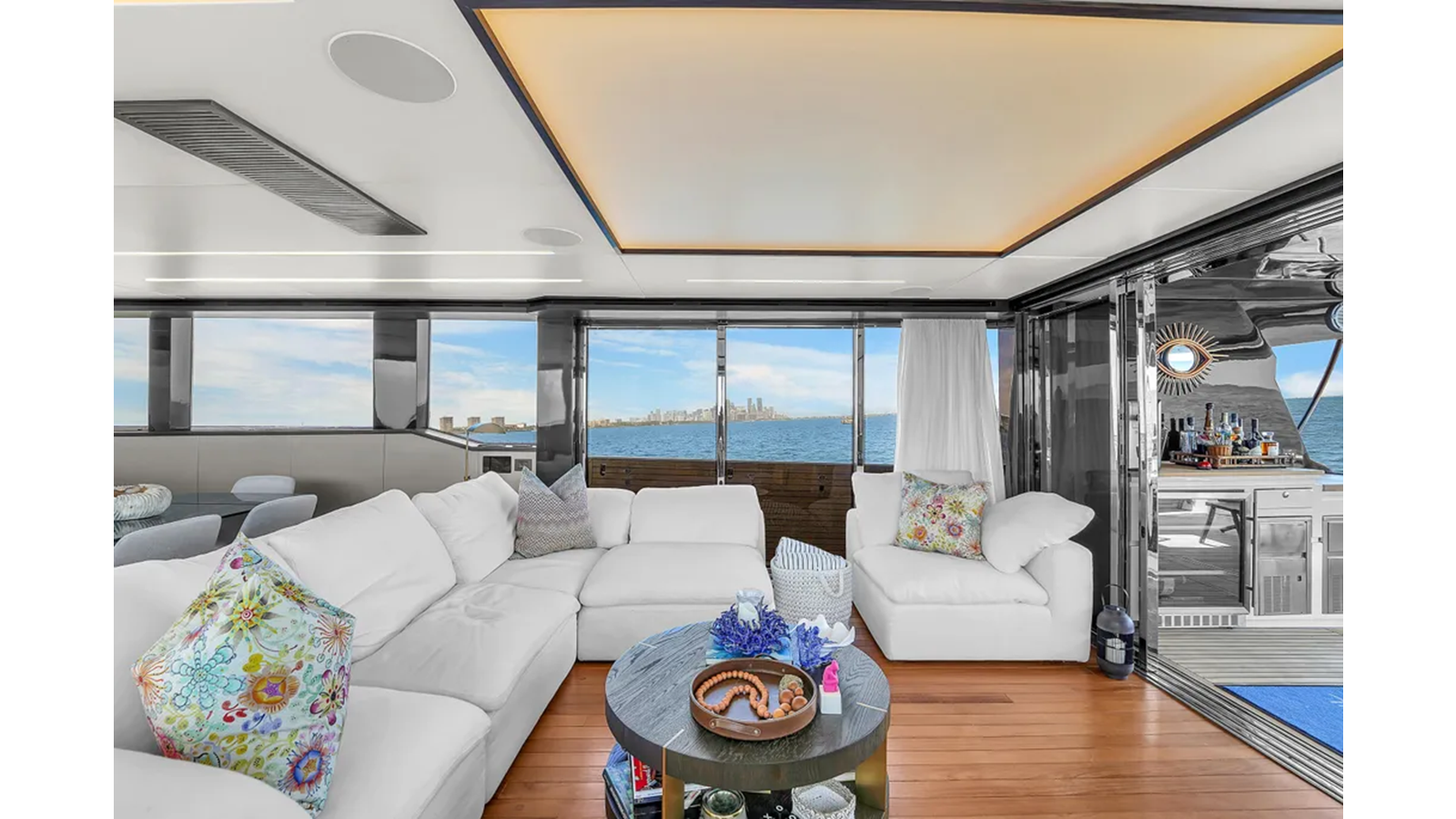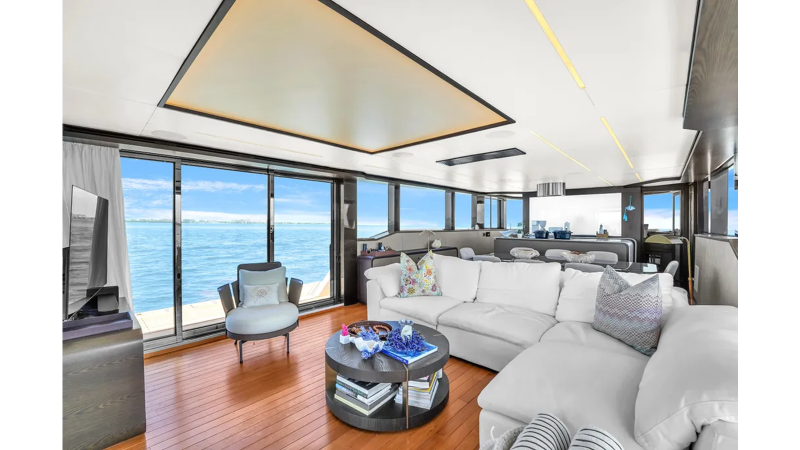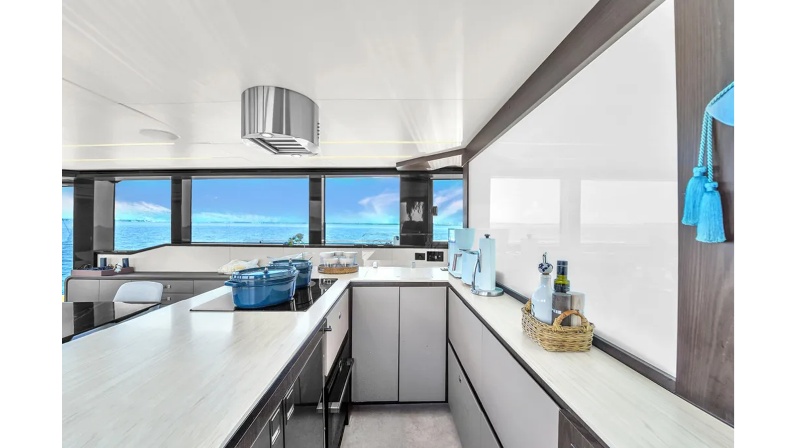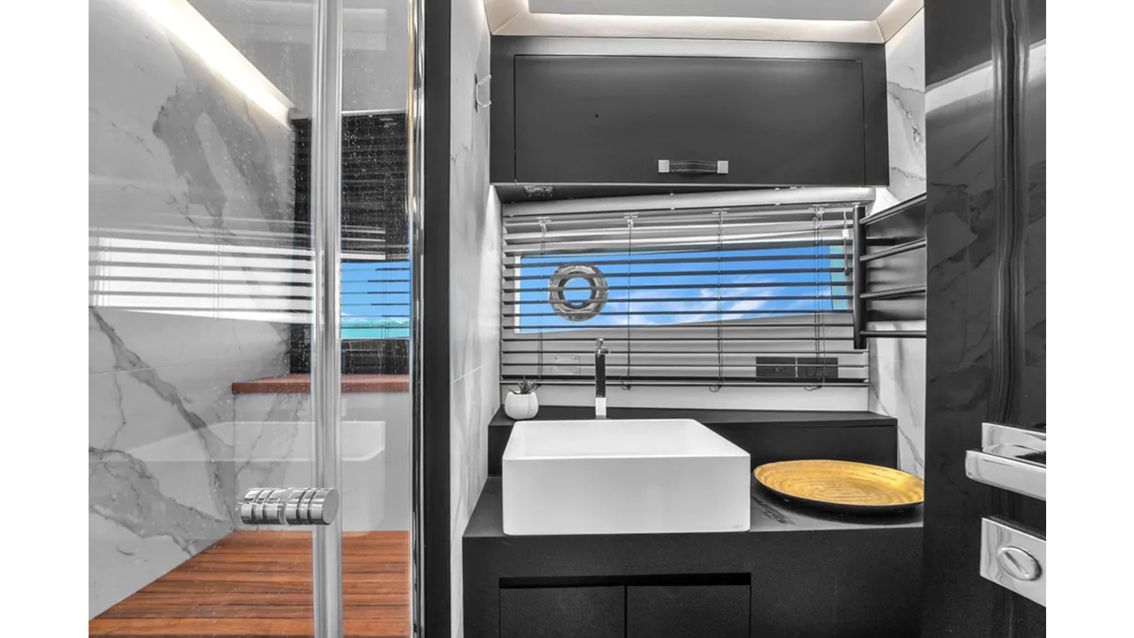 Let nature flow. This is the OKEAN 80 Yacht Lounge concept. It allows all deck doors to open completely, integrating the indoor and outdoor environments, creating a terrace for you to enjoy with up to 30 guests over the sea. Nearby is the Beach Club at the stern of OKEAN 80. The multiple positions the submersible sliding platform offers allow you to establish a new relationship with the ocean. Dive safely, experience nature intensely, and return to the boat comfortably.