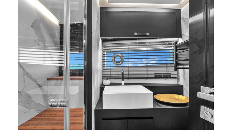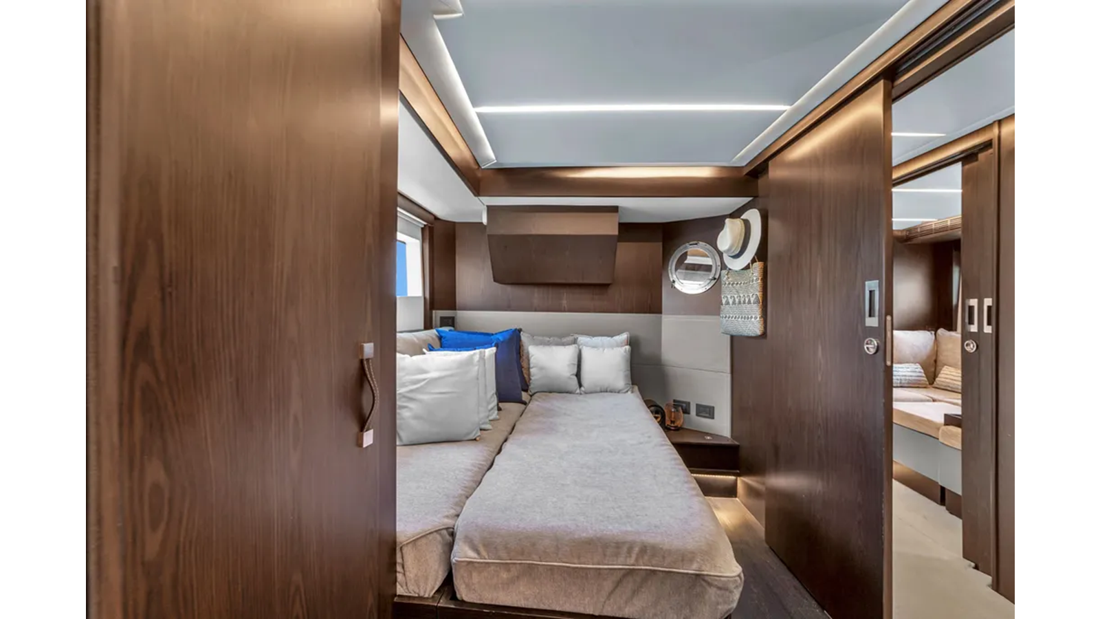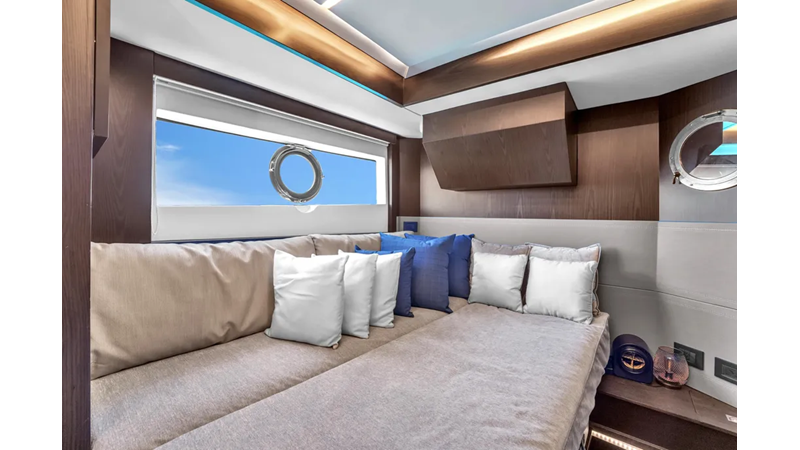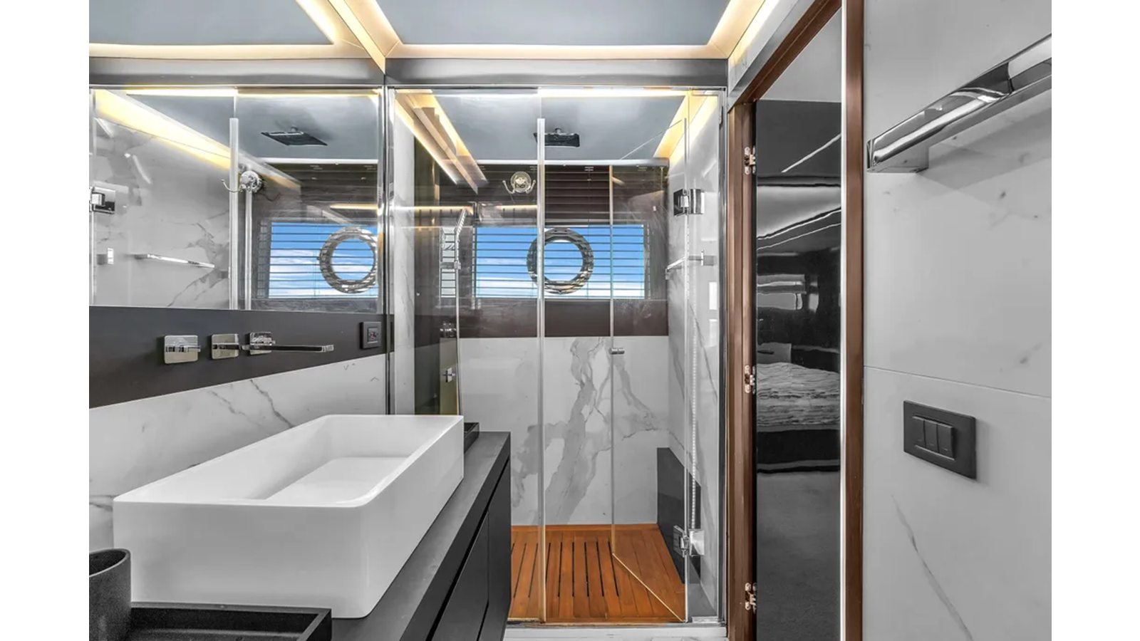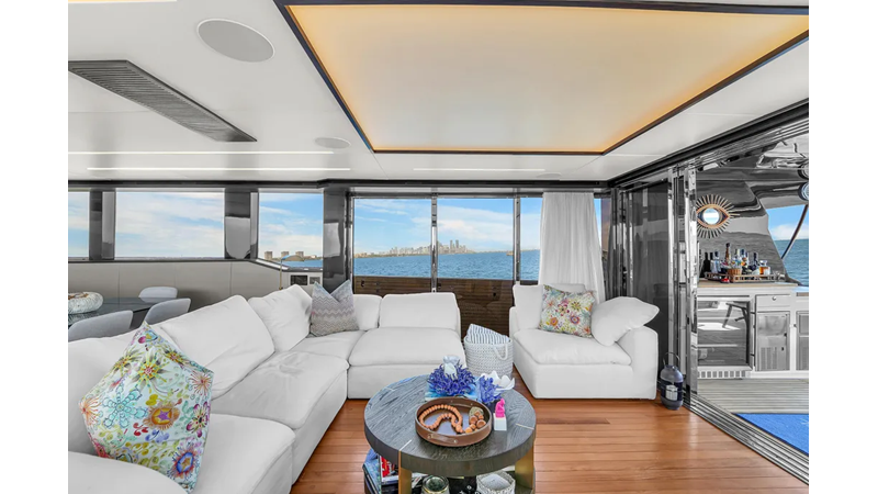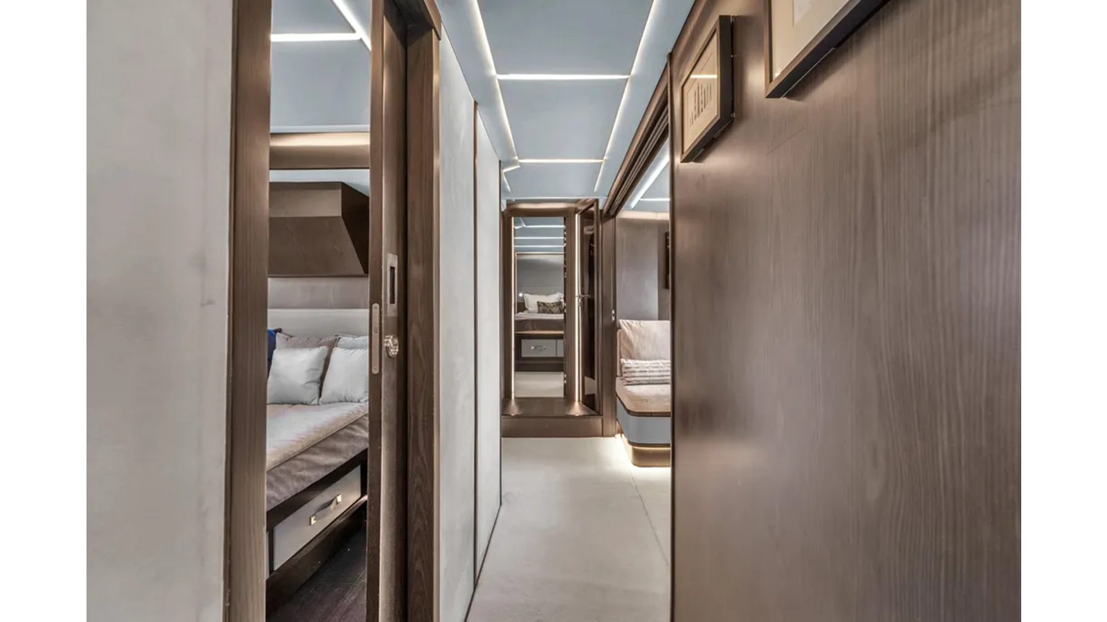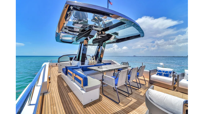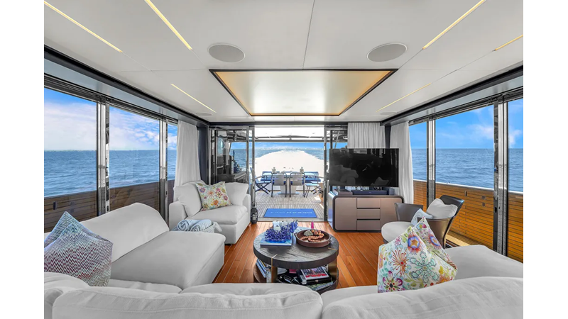Let nature flow. This is the OKEAN 80 Yacht Lounge concept. It allows all deck doors to open completely, integrating the indoor and outdoor environments, creating a terrace for you to enjoy with up to 30 guests over the sea. Nearby is the Beach Club at the stern of OKEAN 80. The multiple positions the submersible sliding platform offers allow you to establish a new relationship with the ocean. Dive safely, experience nature intensely, and return to the boat comfortably.