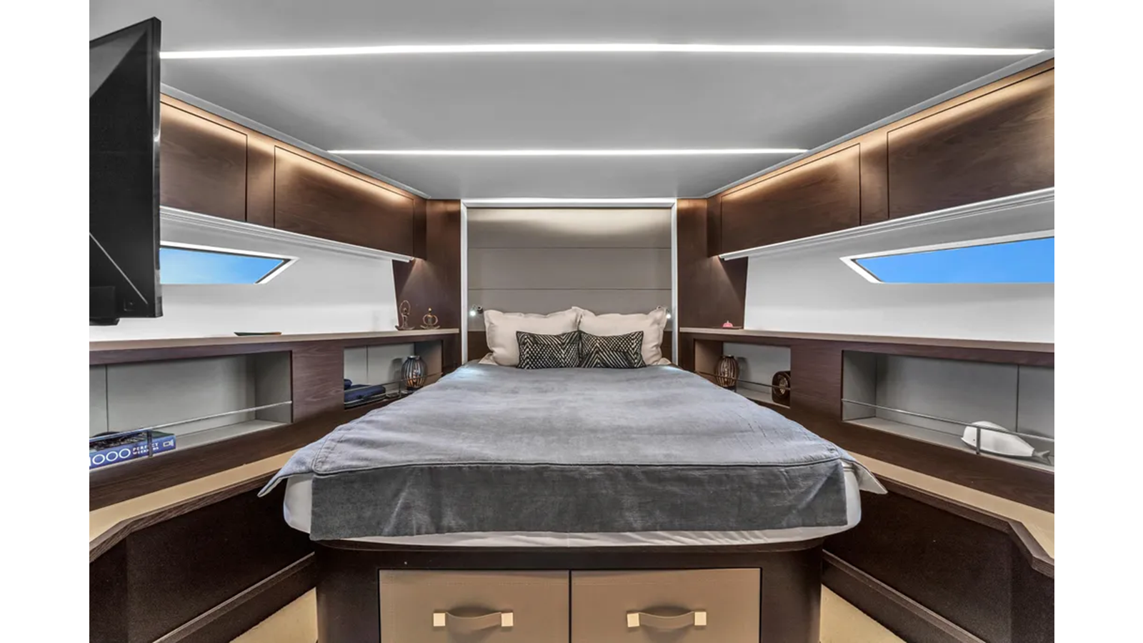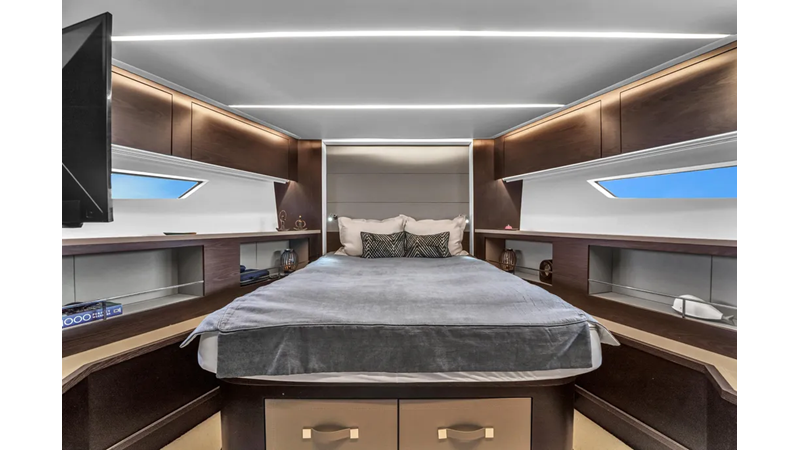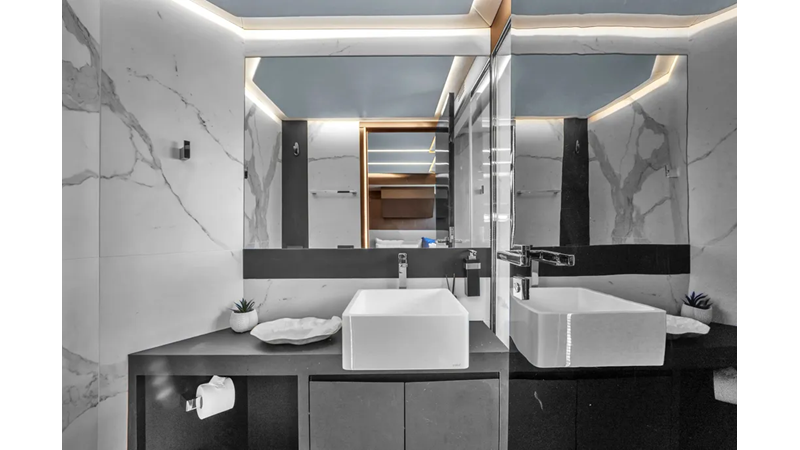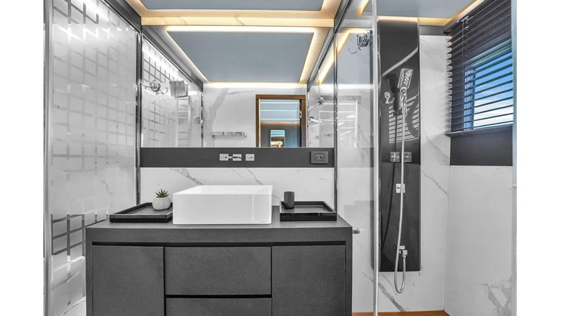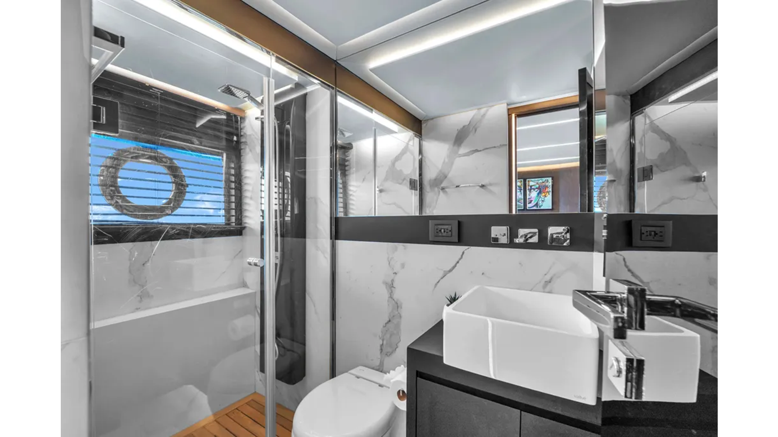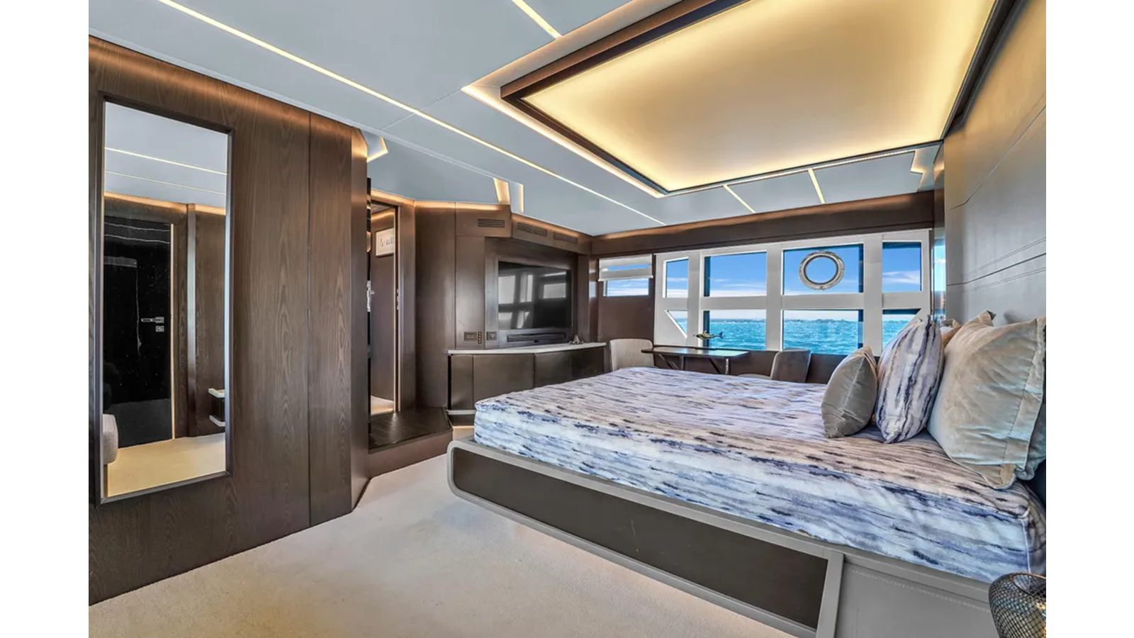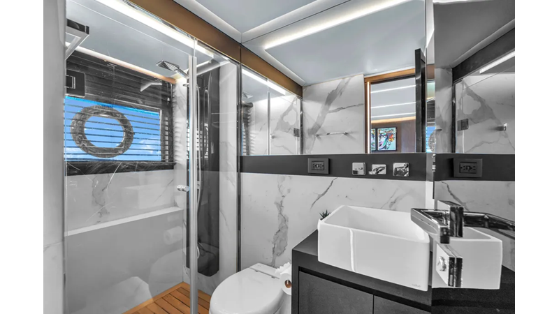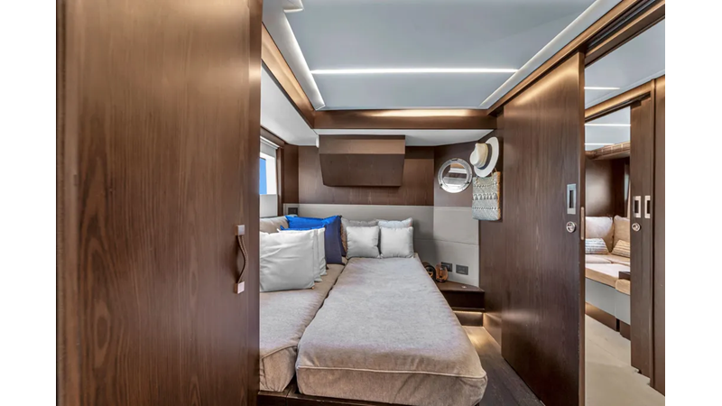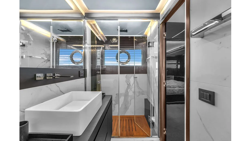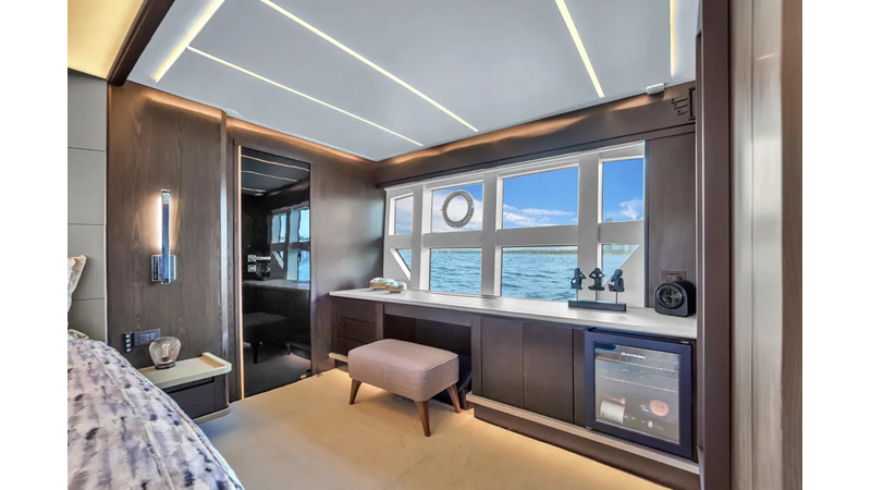 Let nature flow. This is the OKEAN 80 Yacht Lounge concept. It allows all deck doors to open completely, integrating the indoor and outdoor environments, creating a terrace for you to enjoy with up to 30 guests over the sea. Nearby is the Beach Club at the stern of OKEAN 80. The multiple positions the submersible sliding platform offers allow you to establish a new relationship with the ocean. Dive safely, experience nature intensely, and return to the boat comfortably.