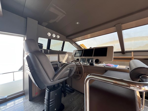 • Interior: Modern Italian styling with rich wood finishes, ample natural light, and panoramic saloon windows
