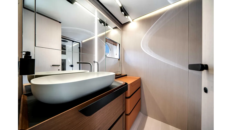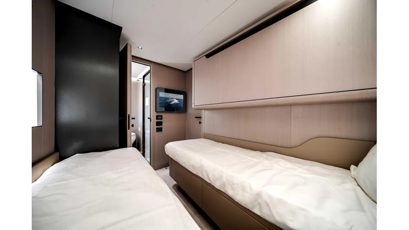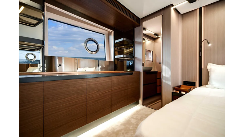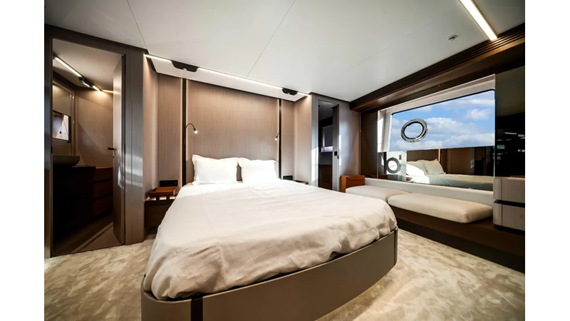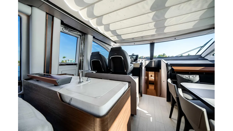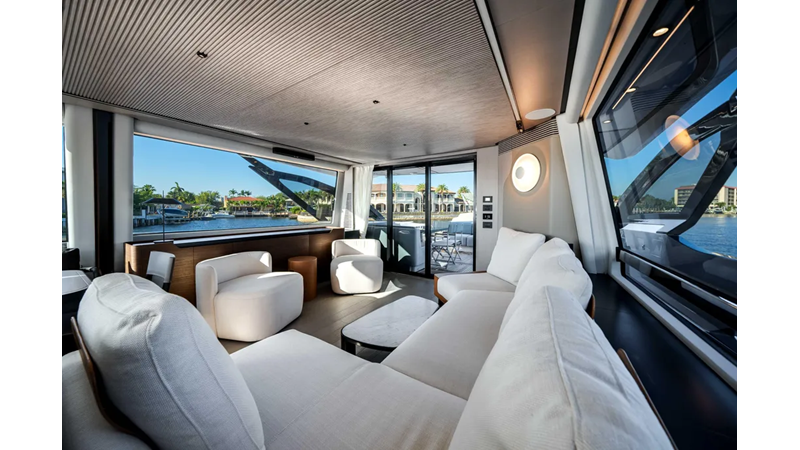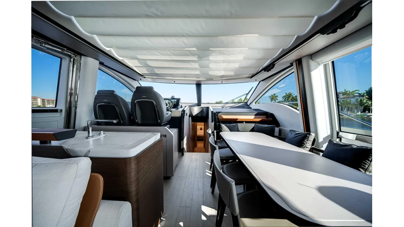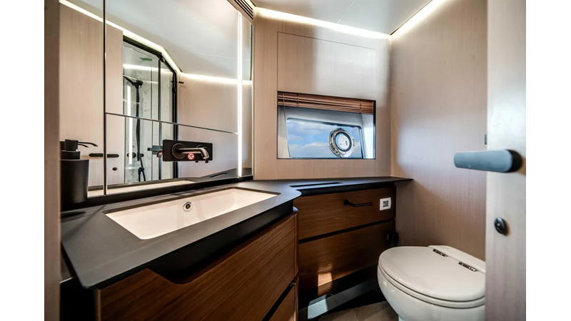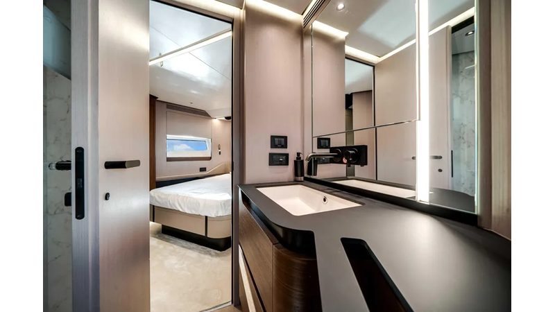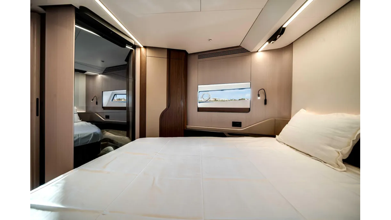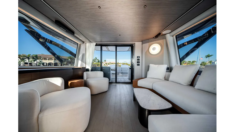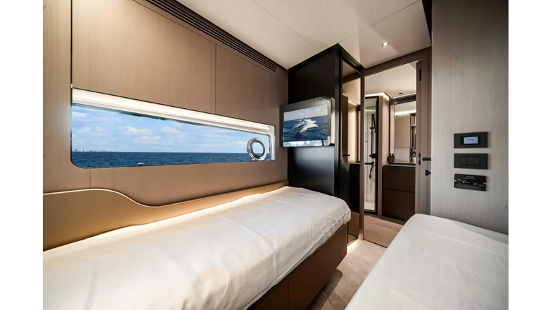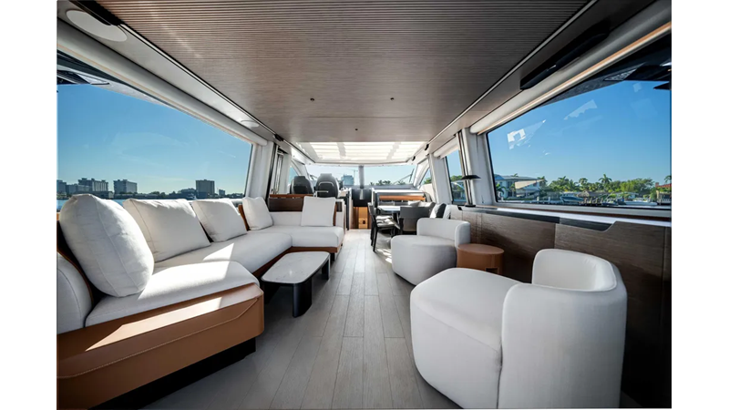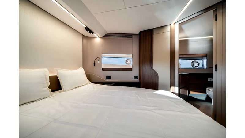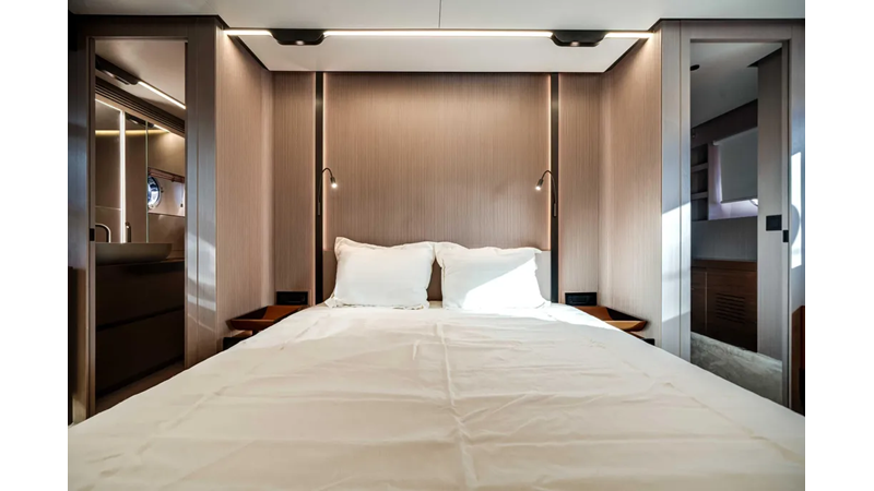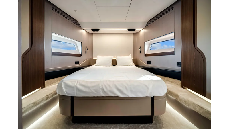 Her sleek lines and striking profile are matched by a completely fresh new design, featuring the all-new Yachtique interior, a new fresh and distinctive style that blends luxurious materials with warm, inviting tones. There is no other S8on the market with this new interior, making her a truly standout vessel.