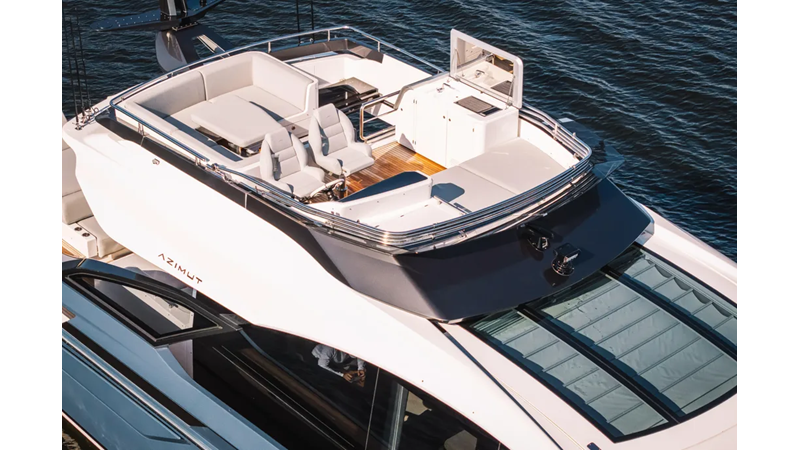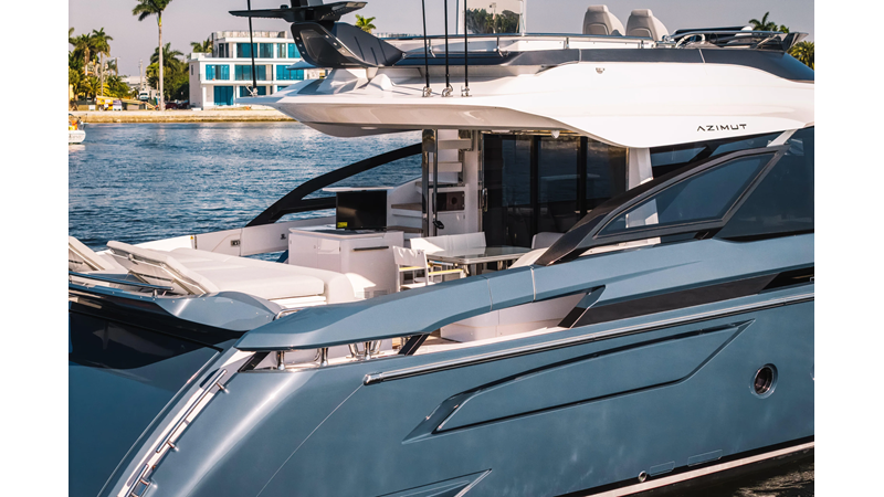 This 2025 Azimut S8 represents the pinnacle of modern yacht design, with extensive use of carbon fiber in the superstructure, transom, and garage door. Making her lighter, faster, and more efficient without compromising strength or stability.