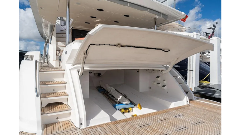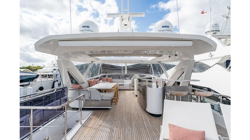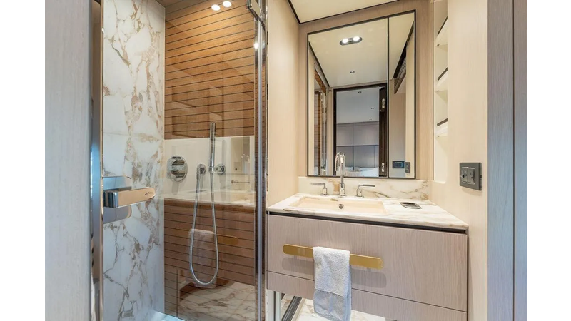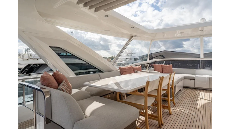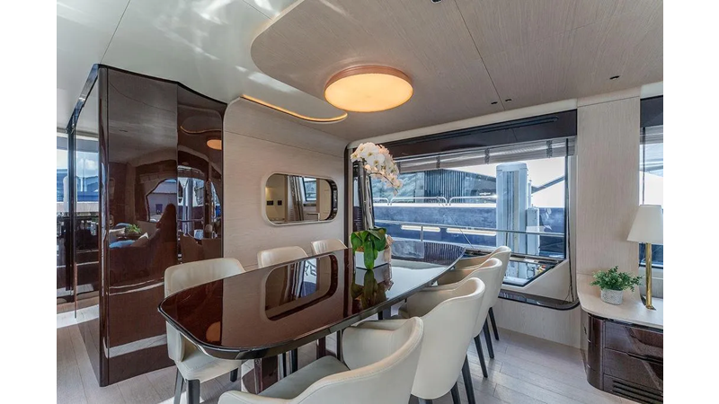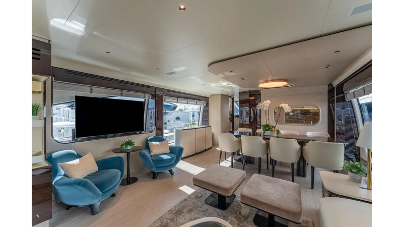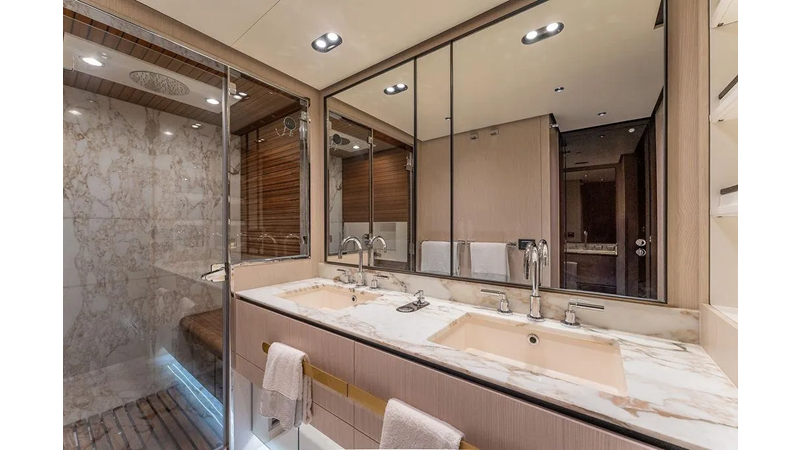 Highlights include expansive exterior lounges, a panoramic flybridge, a full-beam master suite with breathtaking sea views, and luxurious guest accommodations. Every detail — from the fine Italian craftsmanship to advanced technology — has been designed to deliver an unmatched onboard experience.