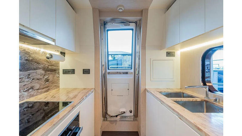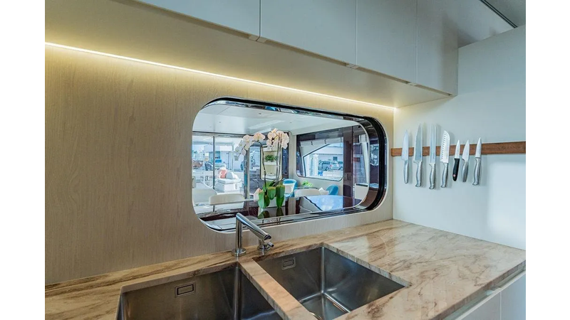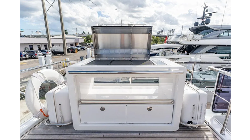 The yacht is one of the only and rare models that has her entire interior designed by Achille Salvagni, an famous Italian architect and designer working in NYC. This model represents a unique combination of craftsmanship and design features that are no longer offered in this size range.