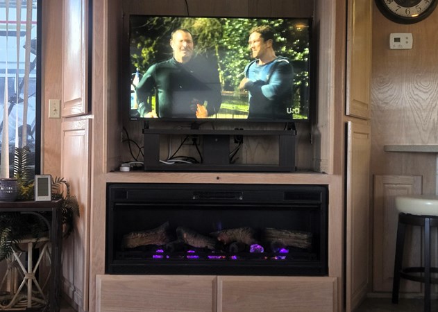 This boats spacious interior was refit in 2020 with new flooring, wallcoverings, tile backsplash, wine cooler, electric fireplace and furnishings.