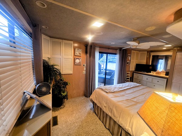 At the end of the passageway, you’ll find a full beam width master stateroom with a king-sized bed and plenty of closet space.